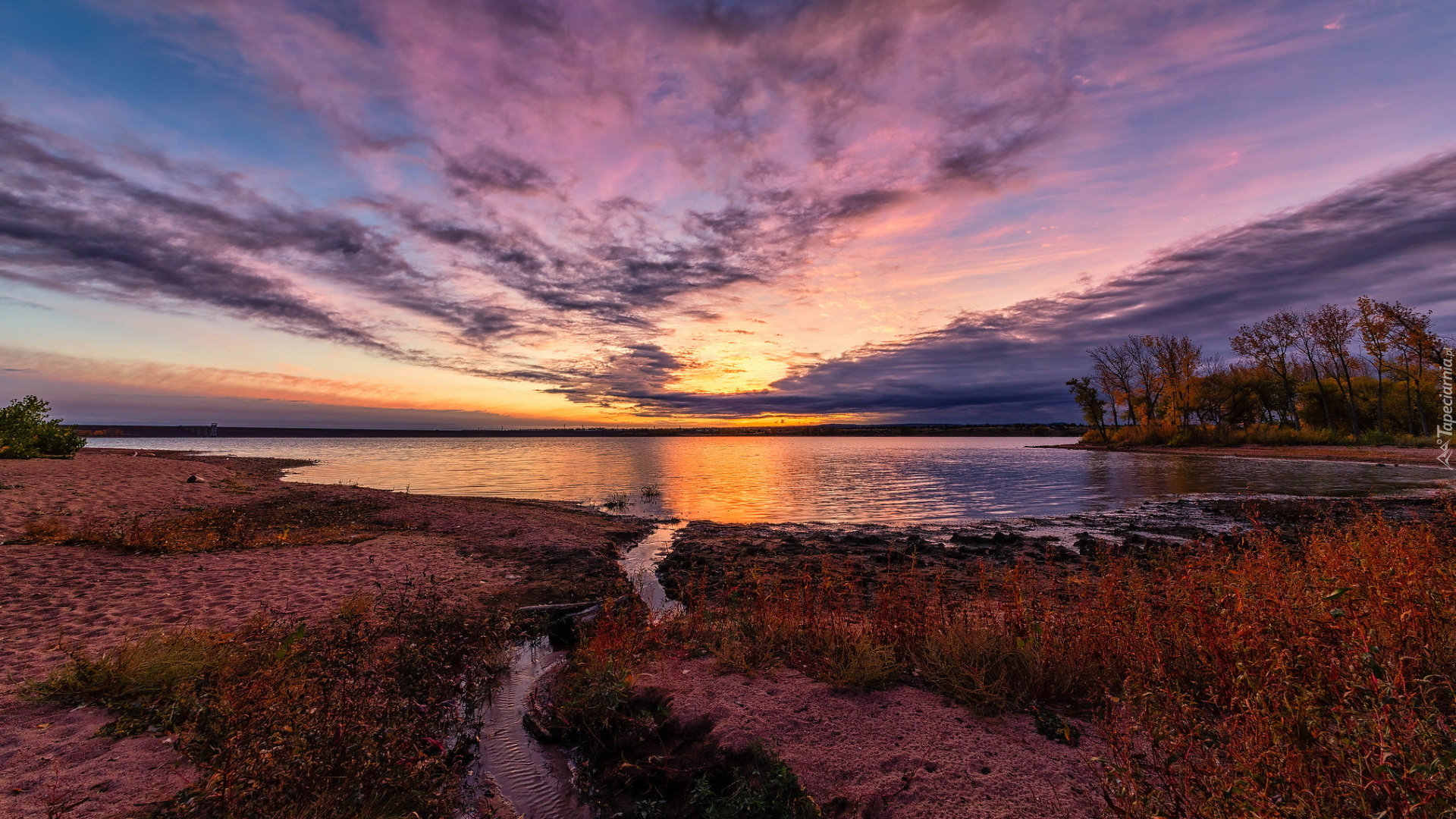 Edytor tapety: Wschód słońca nad jeziorem Chatfield Lake
