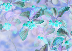 Edytor tapety: Czerwone owoce na liściastych gałązkach krzewu