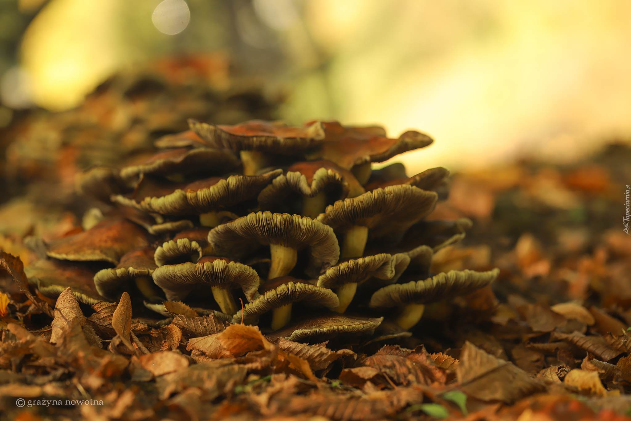 Edytor tapety: Grzyby w opadłych liściach
