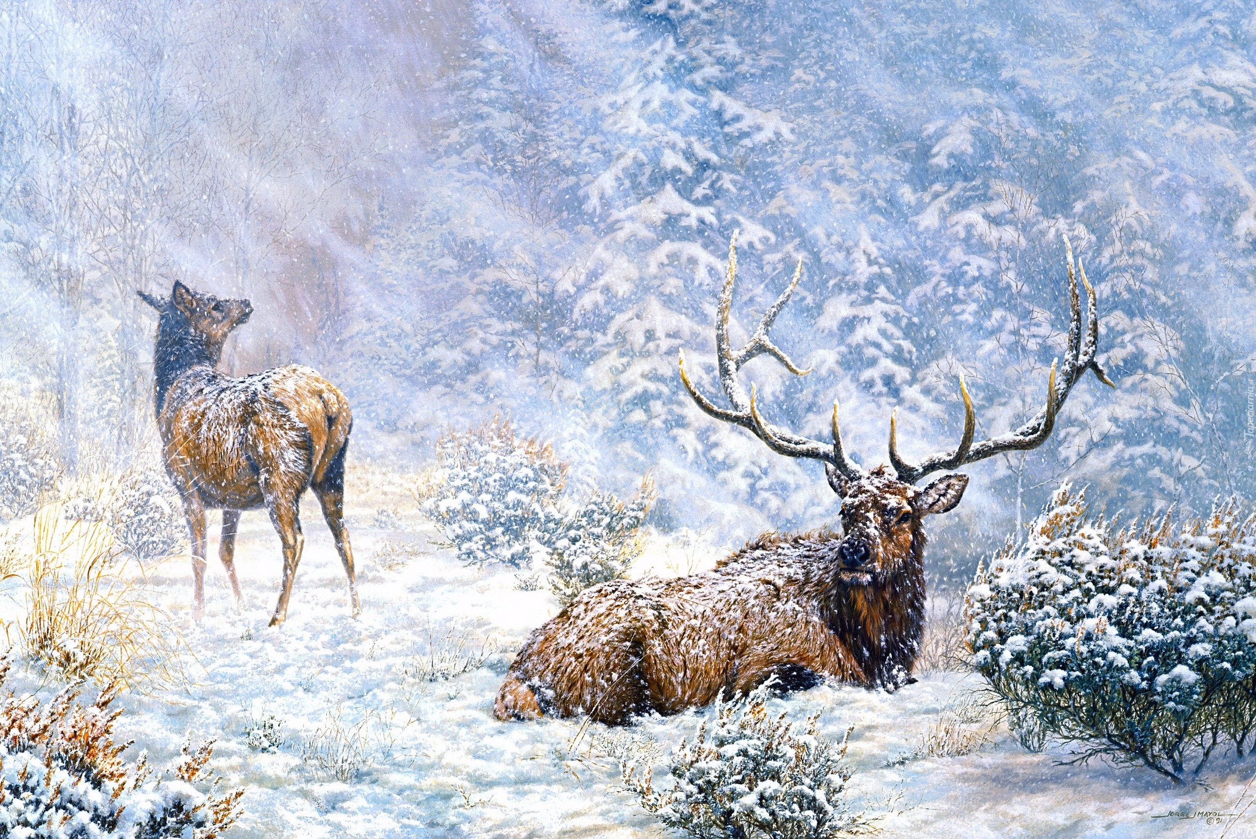Edytor tapety: Jelenie w śniegu