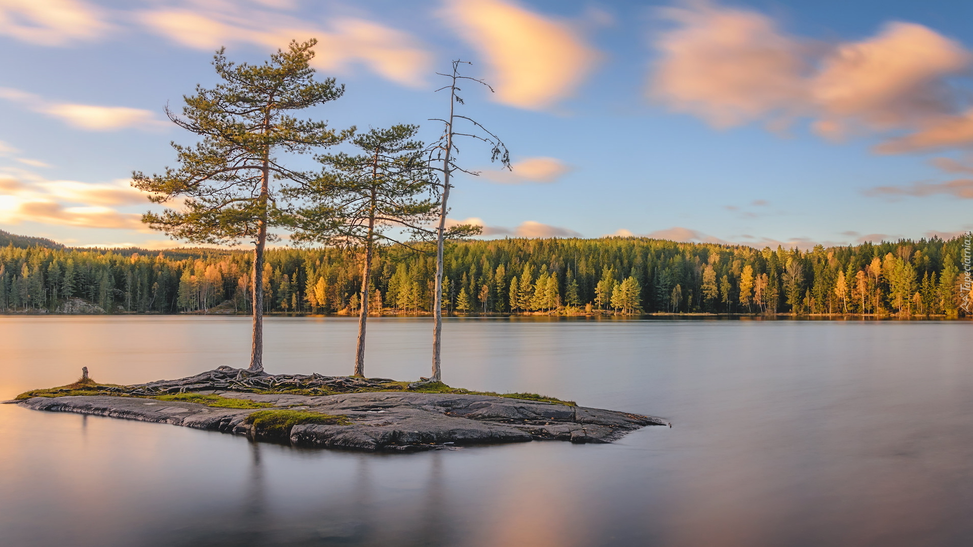Edytor tapety: Trzy drzewa na wysepce