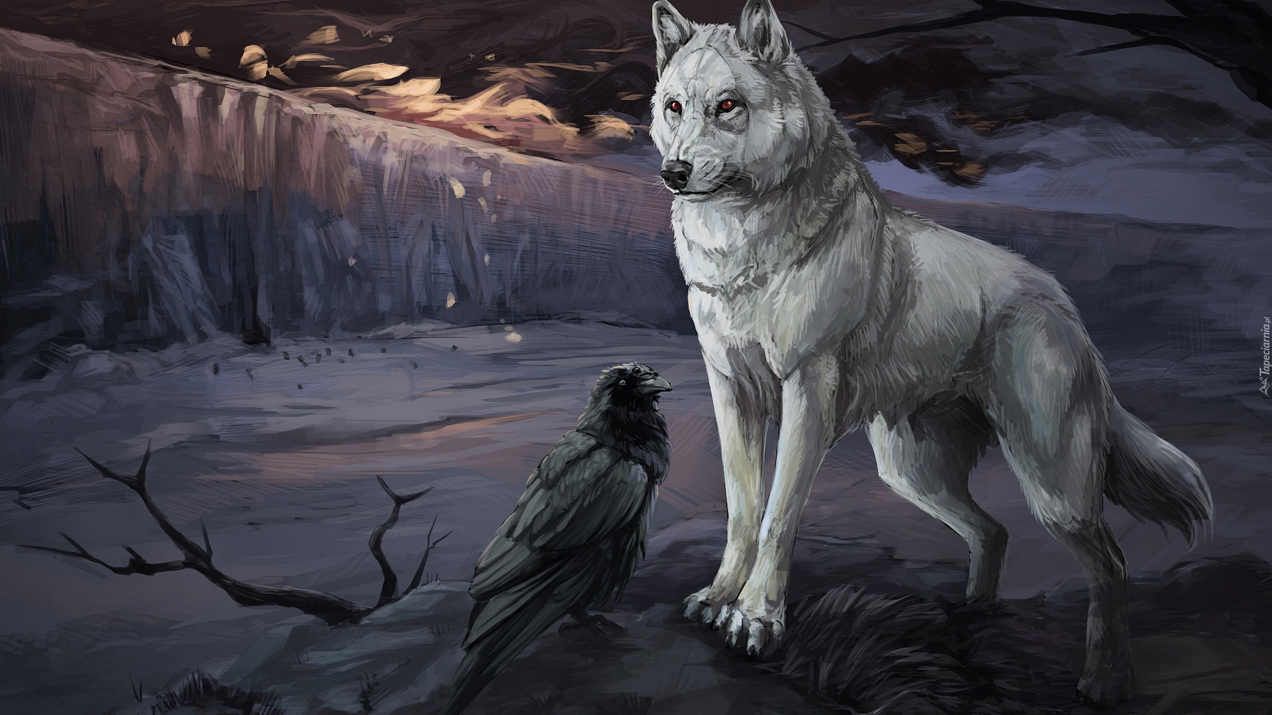 Edytor tapety: Wilk i kruk w grafice