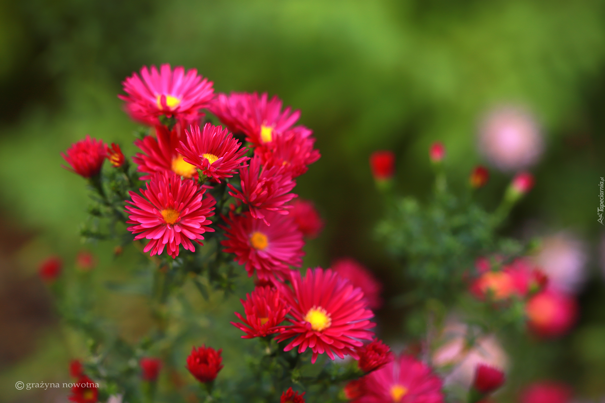 Edytor tapety: Rozkwitające astry w zbliżeniu