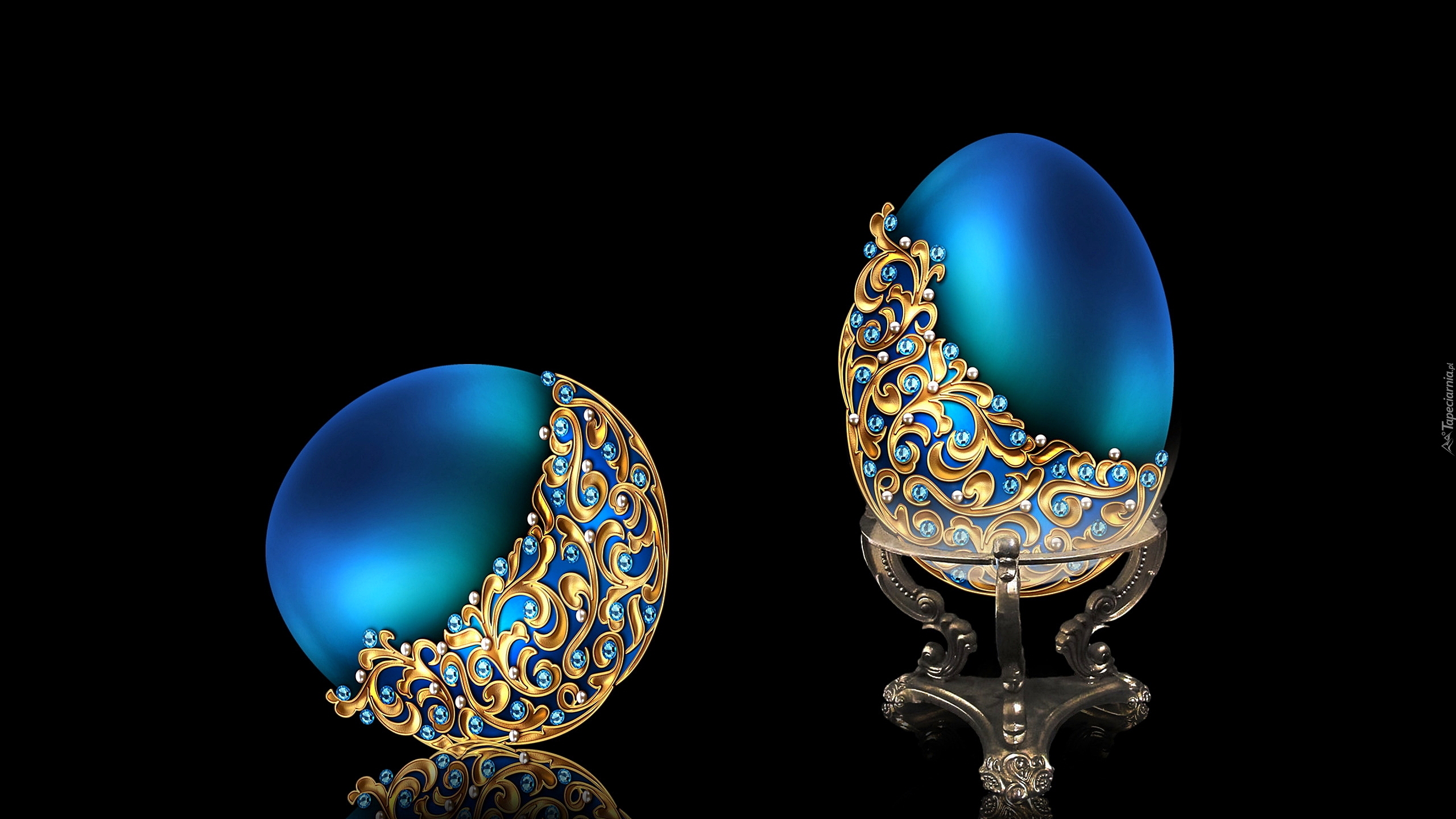 Edytor tapety: Dwa niebieskie jajka w ozdobnej obudowie