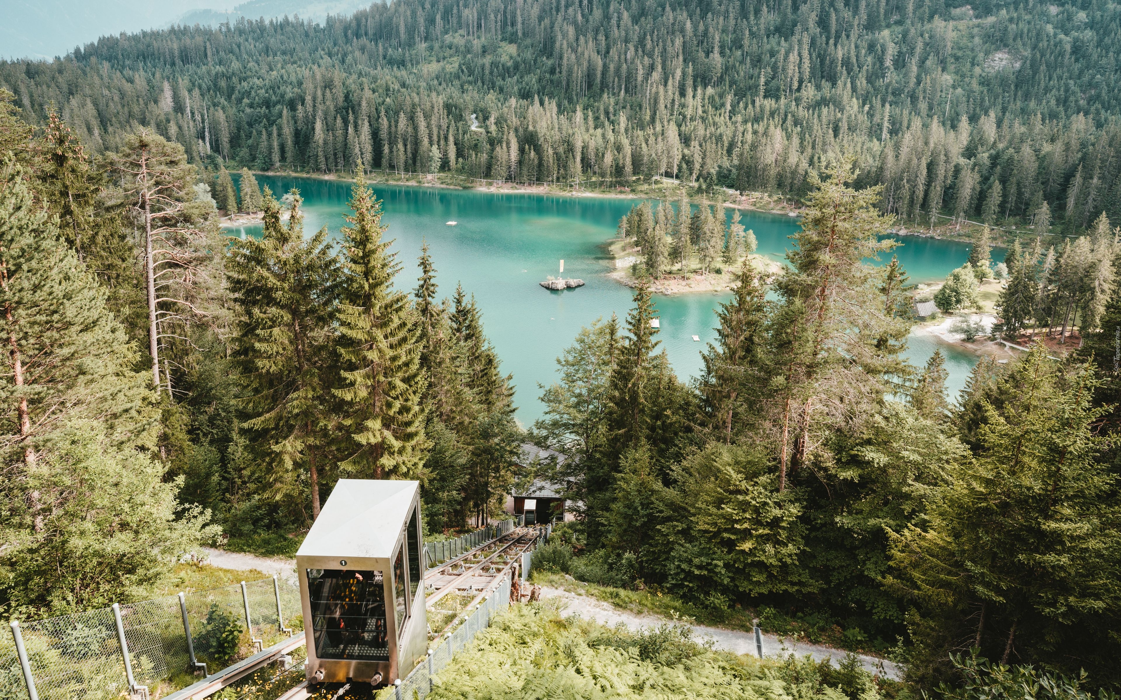 Edytor tapety: Kolejka linowa przy jeziorze Caumasee w Szwajcarii
