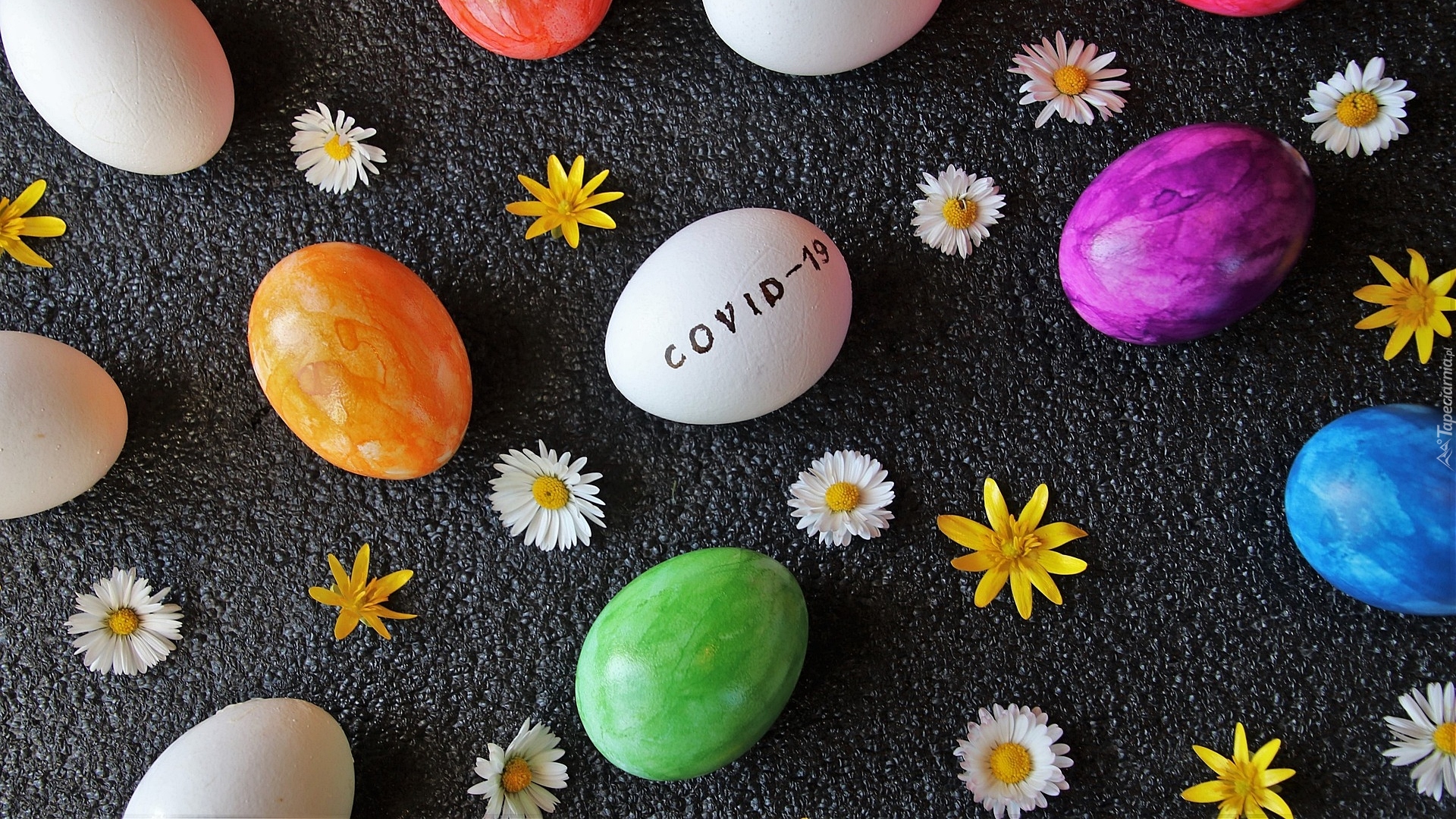 Edytor tapety: Pisanki z napisem covid 19