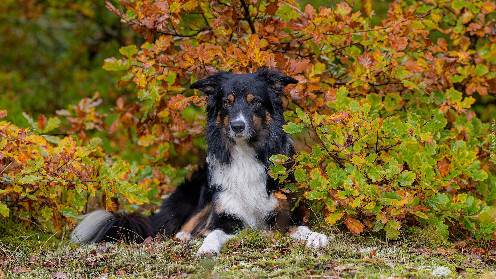 Edytor tapety: Border collie przy jesiennym krzewie