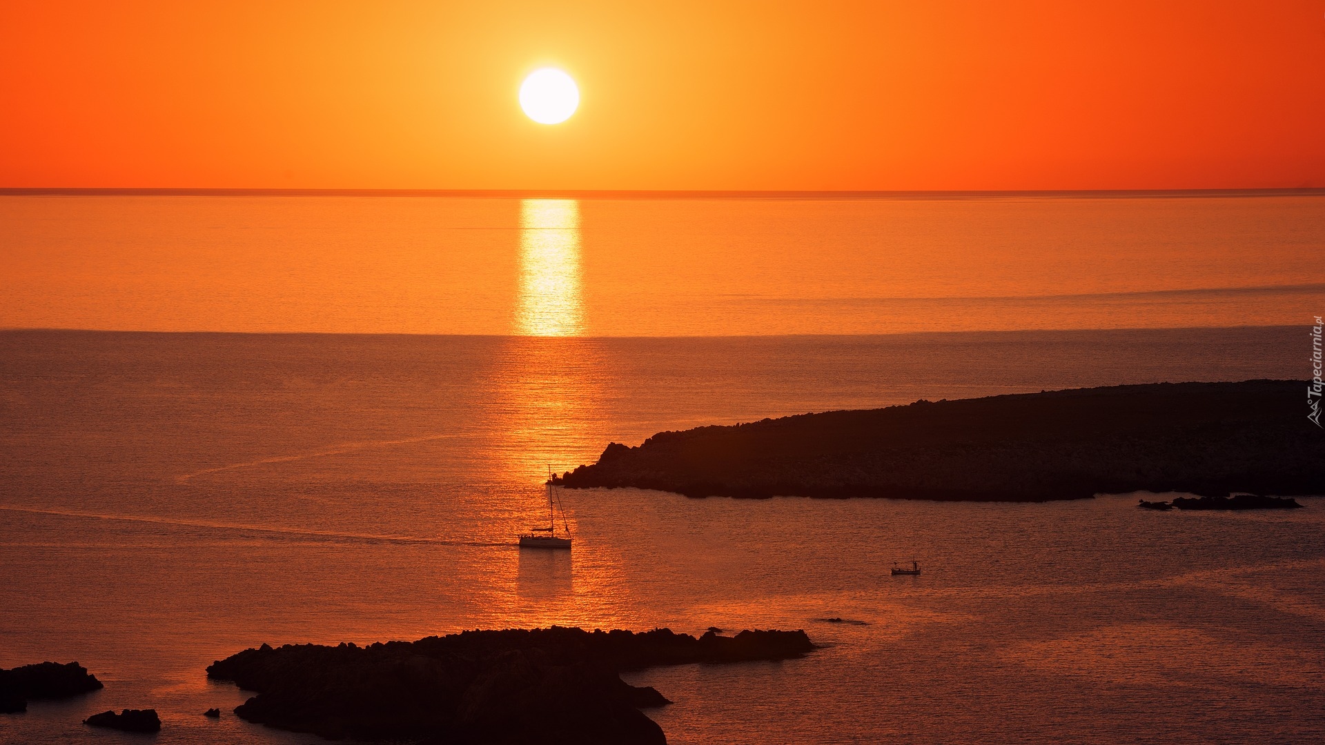 Edytor tapety: Łódka wpływająca do zatoki o zachodzie słońca