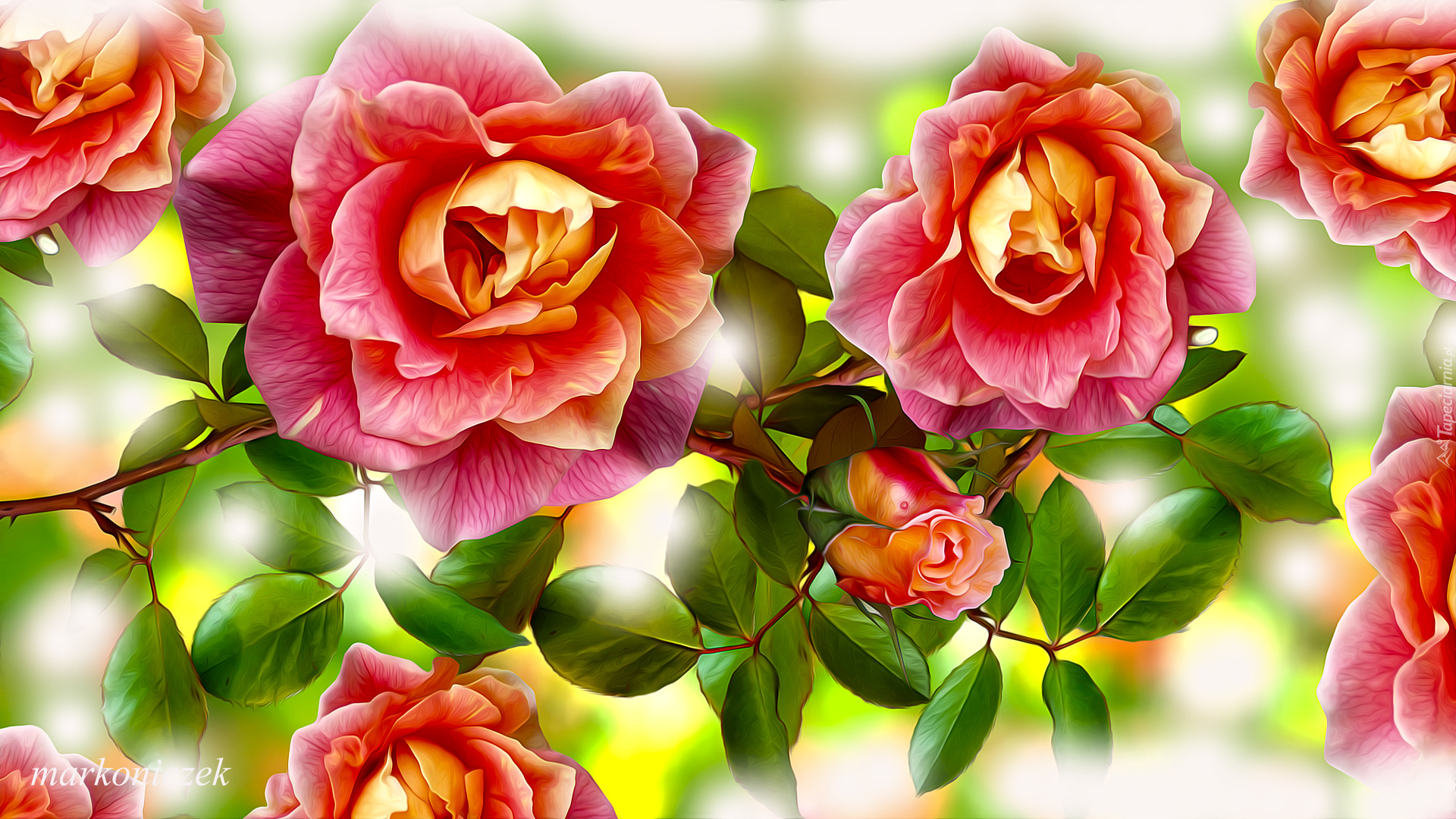 Edytor tapety: Grafika róż z listkami