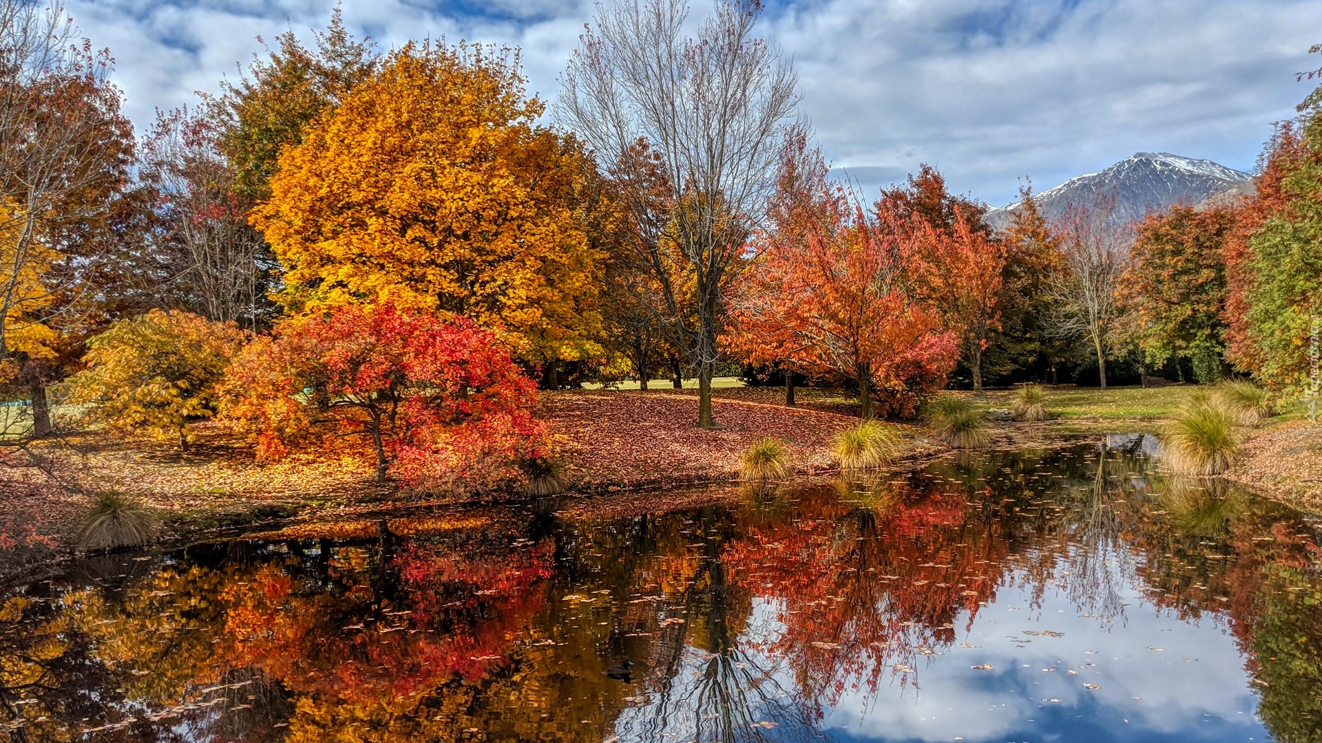 Edytor tapety: Jesień w parku nad stawem