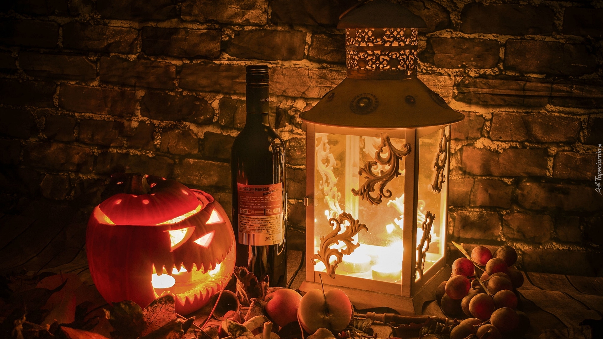 Edytor tapety: Dynia i lampion w halloweenowej kompozycji