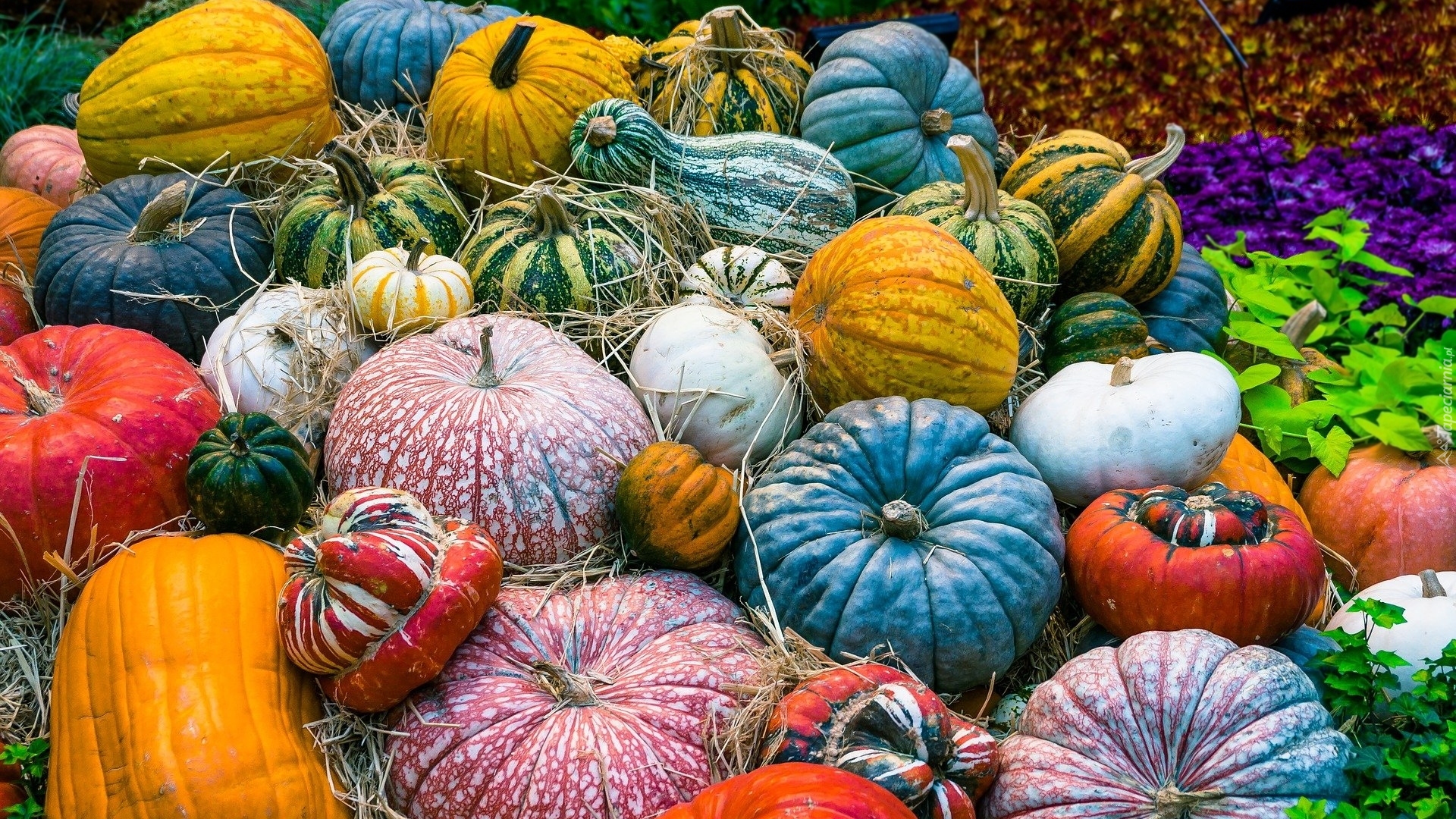 Edytor tapety: Różnokolorowe ozdobne dynie