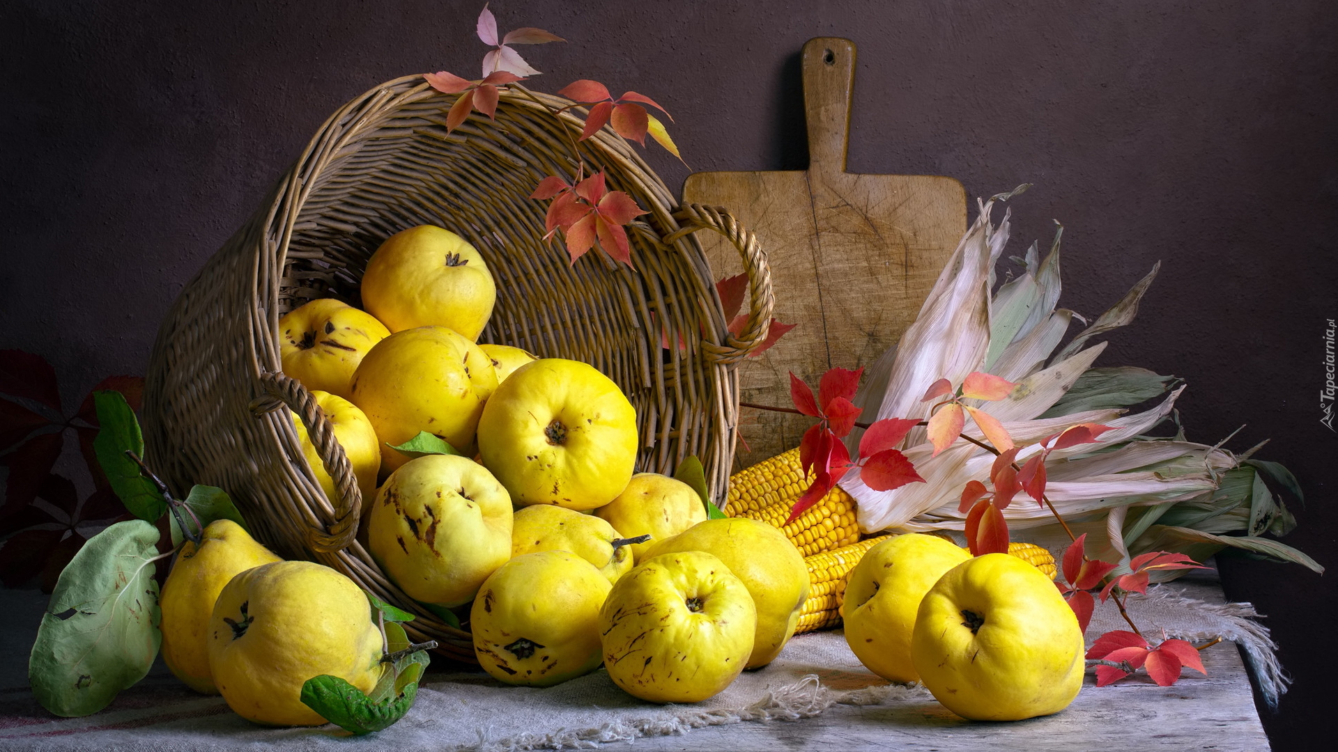 Edytor tapety: Przewrócony koszyk z pigwami