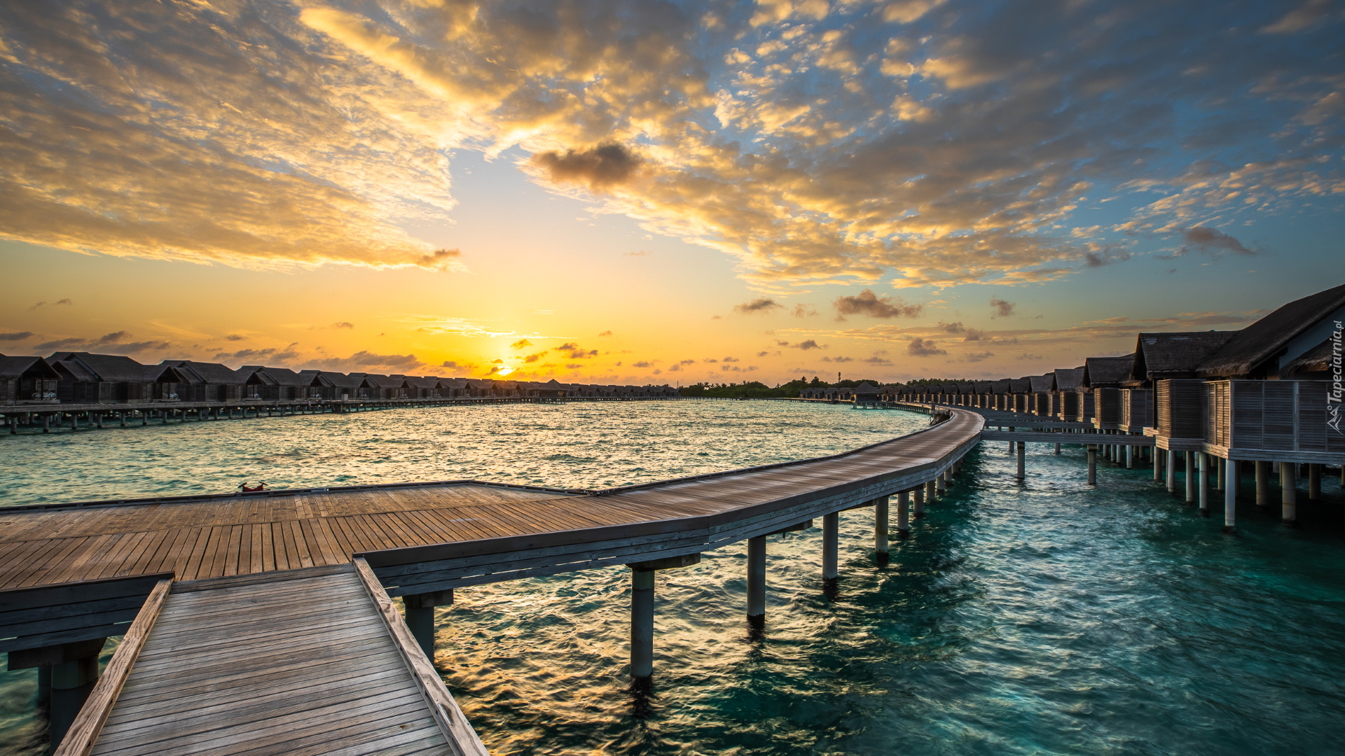 Edytor tapety: Domki na palach przy pomoście na Malediwach