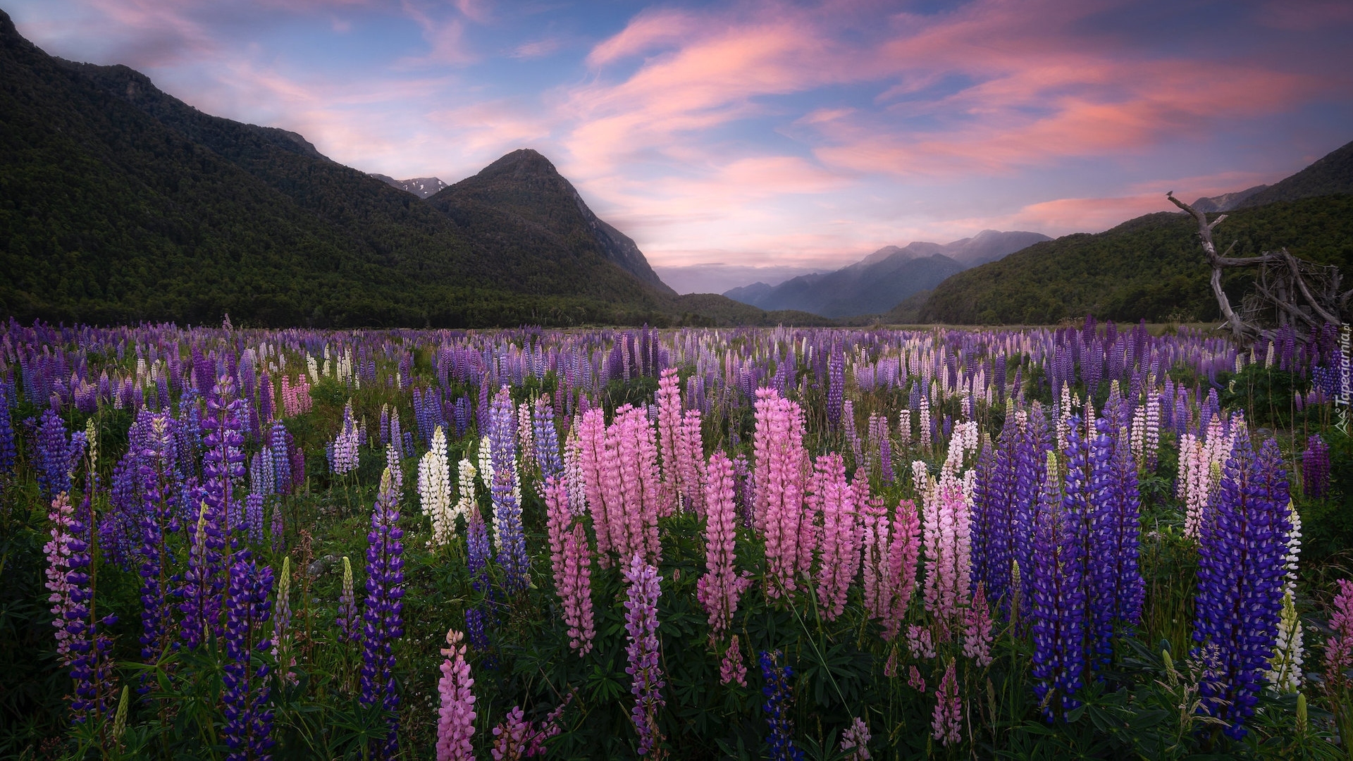 Edytor tapety: Łubin na łące w dolinie Eglinton Valley