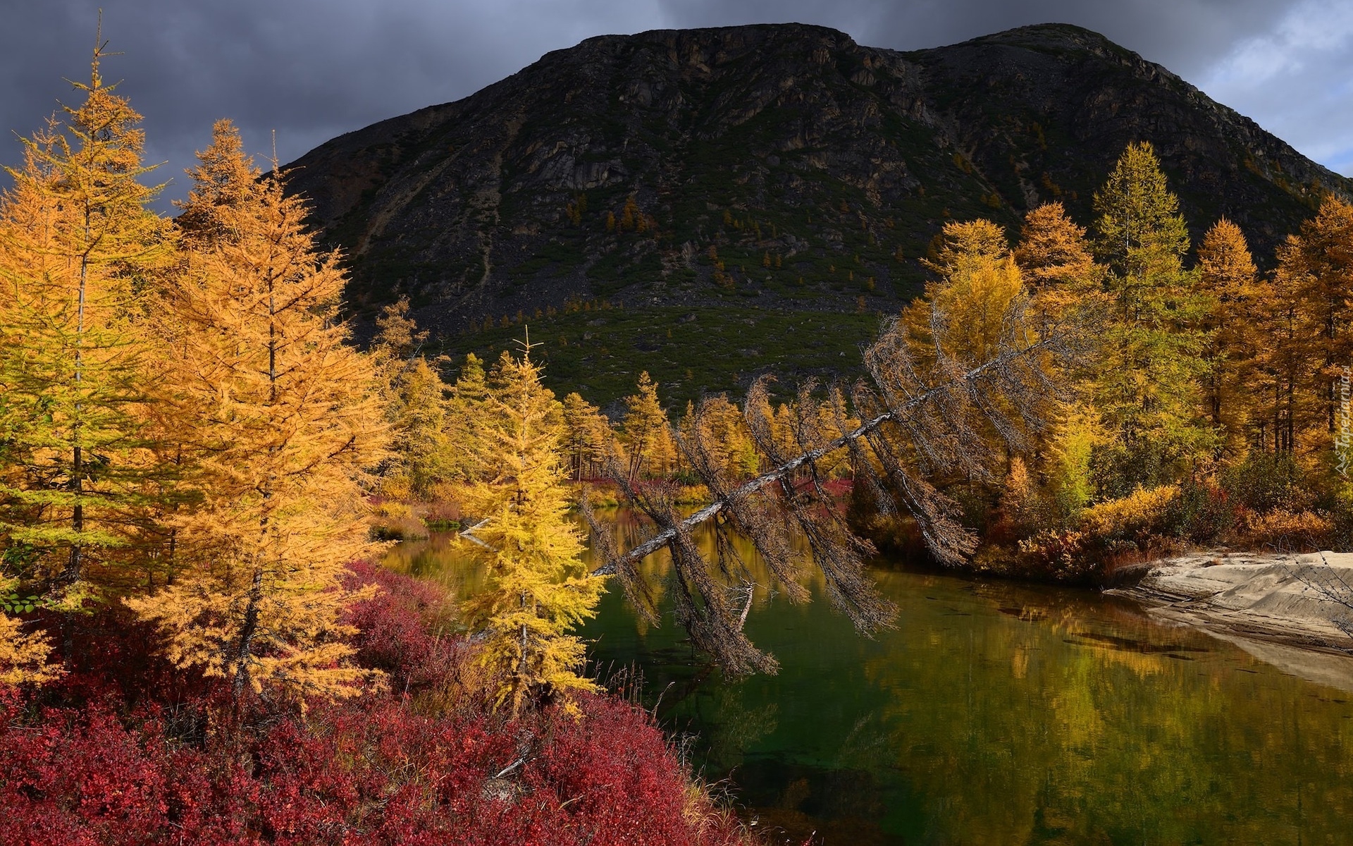 Edytor tapety: Rzeka Purga w Rosji pośród jesiennej roślinności