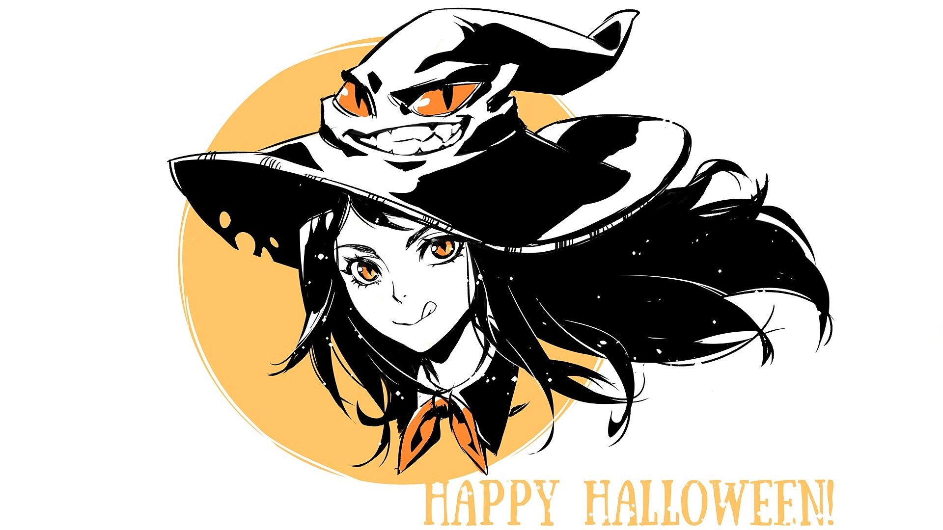 Edytor tapety: Czarownica na białym tle z napisem Happy Halloween