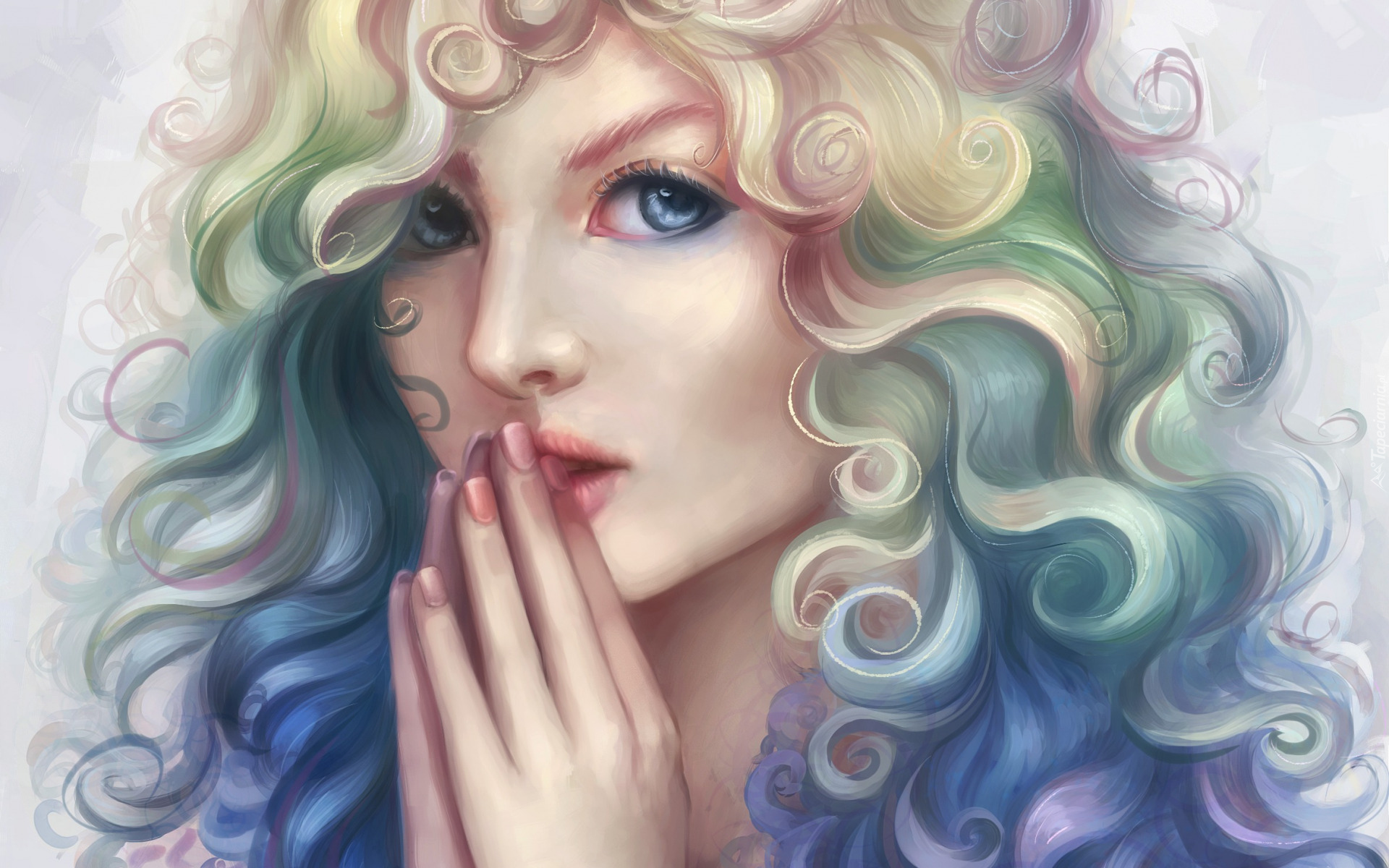 Edytor tapety: Twarz dziewczyny z kręconymi włosami w grafice