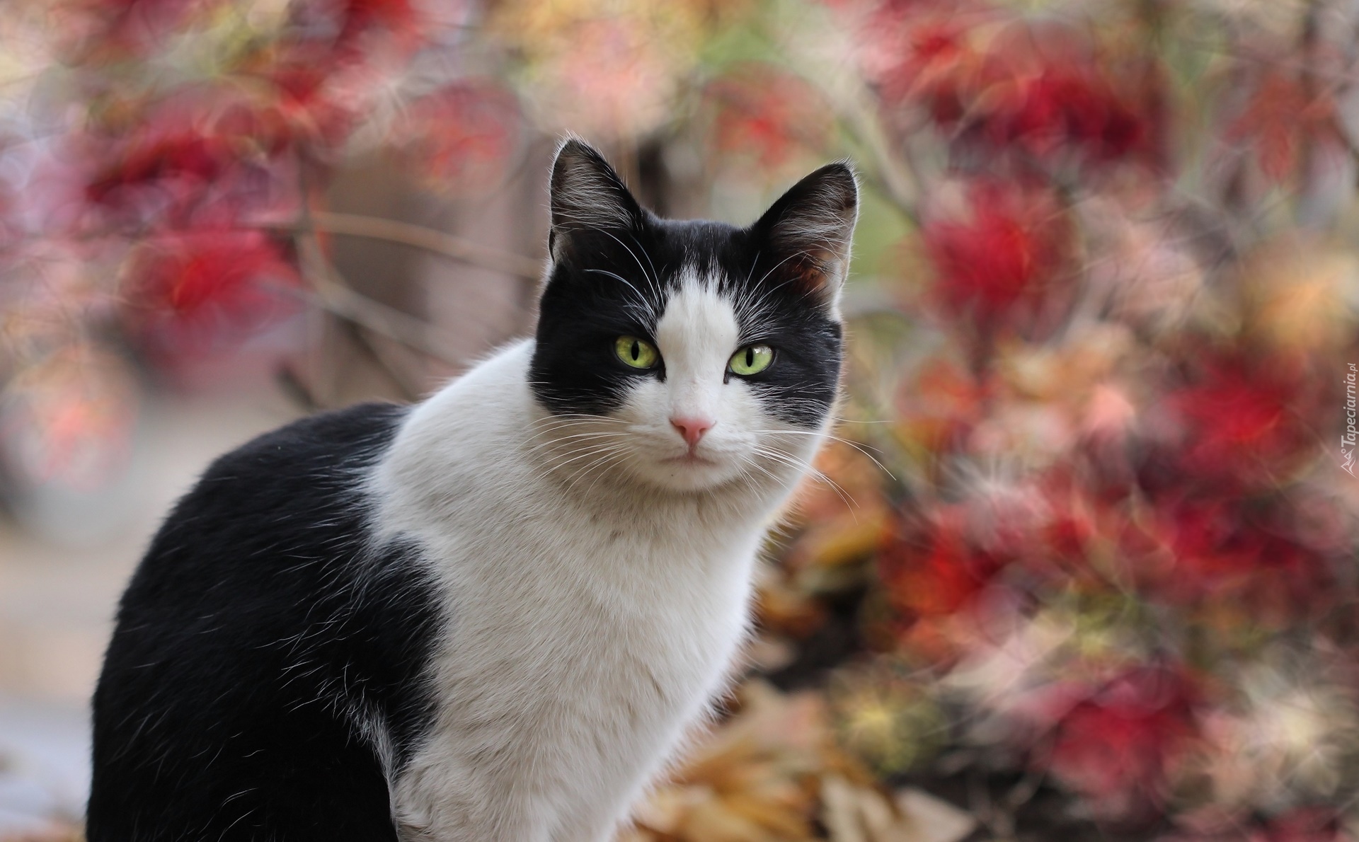 Edytor tapety: Czarno-biały kot na kolorowym tle