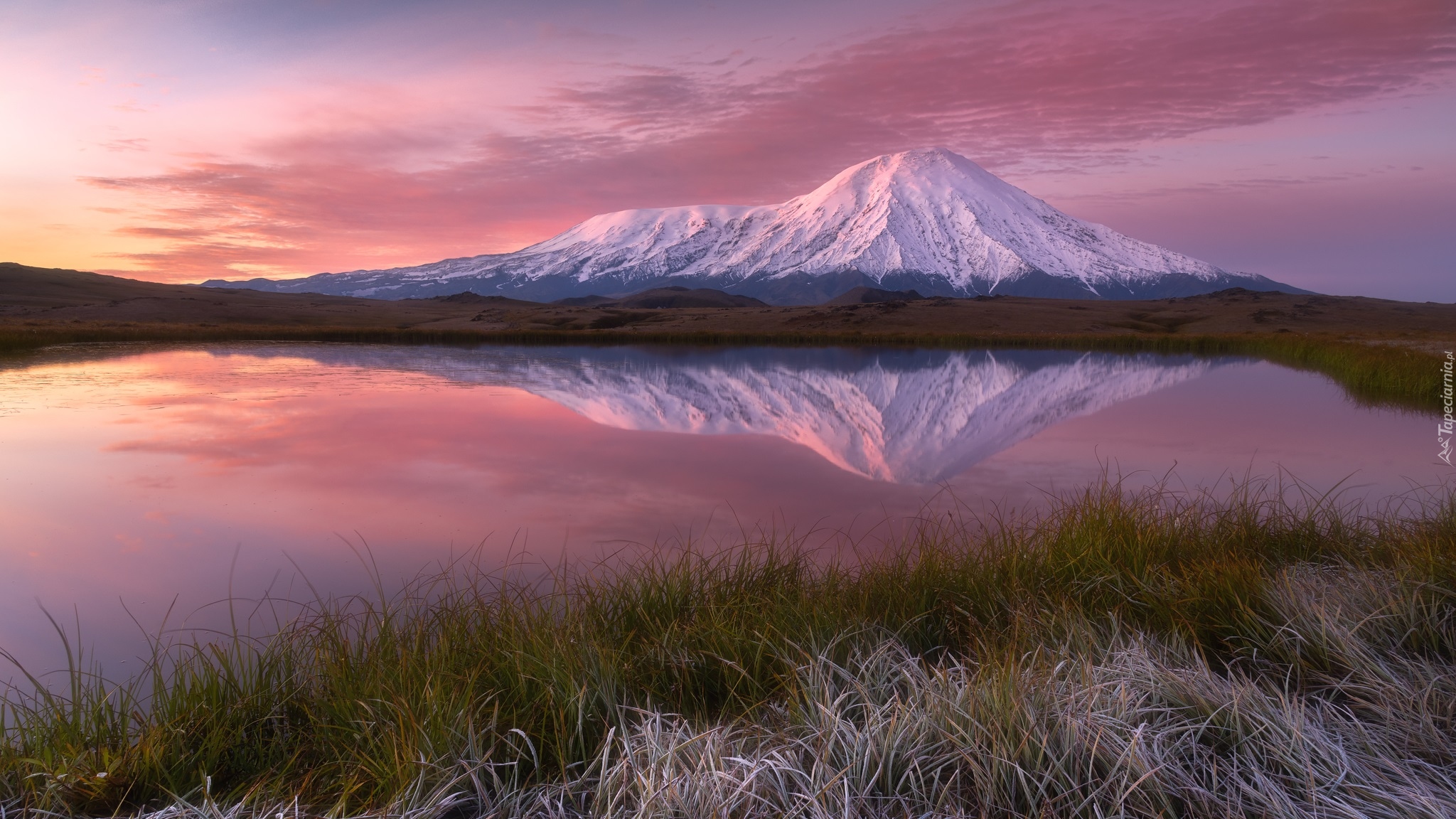 Edytor tapety: Widok znad jeziora na stratowulkan Ostry Tołbaczik