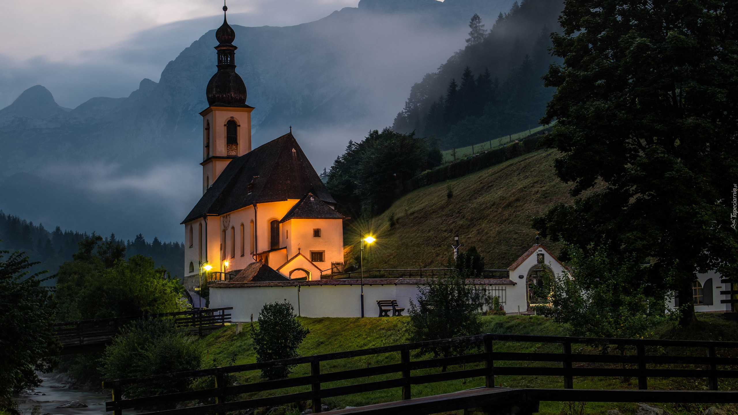 Edytor tapety: Oświetlony Kościół św Sebastiana w Ramsau bei Berchtesgaden