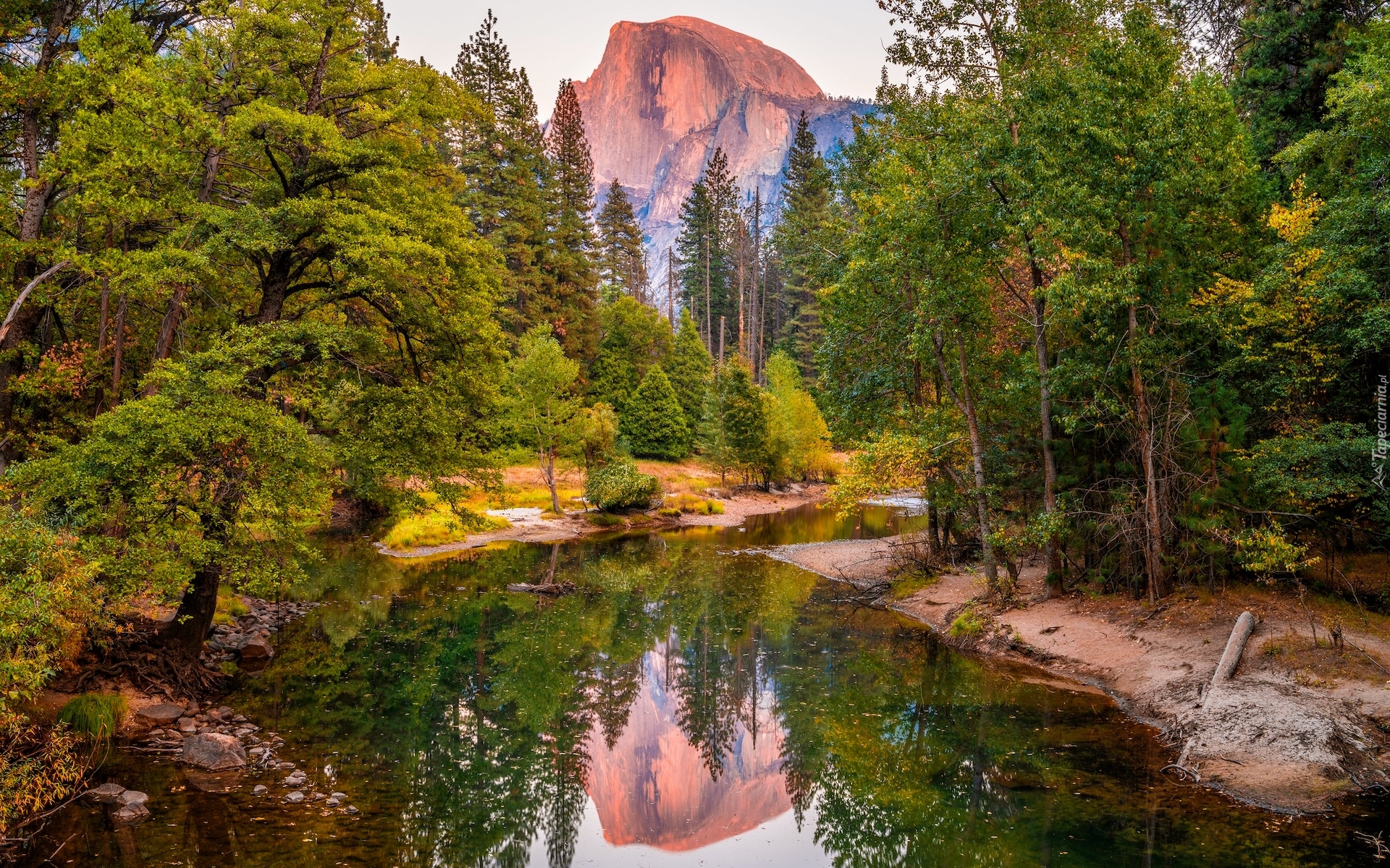 Edytor tapety: Widok zza drzew na szczyt Half Dome