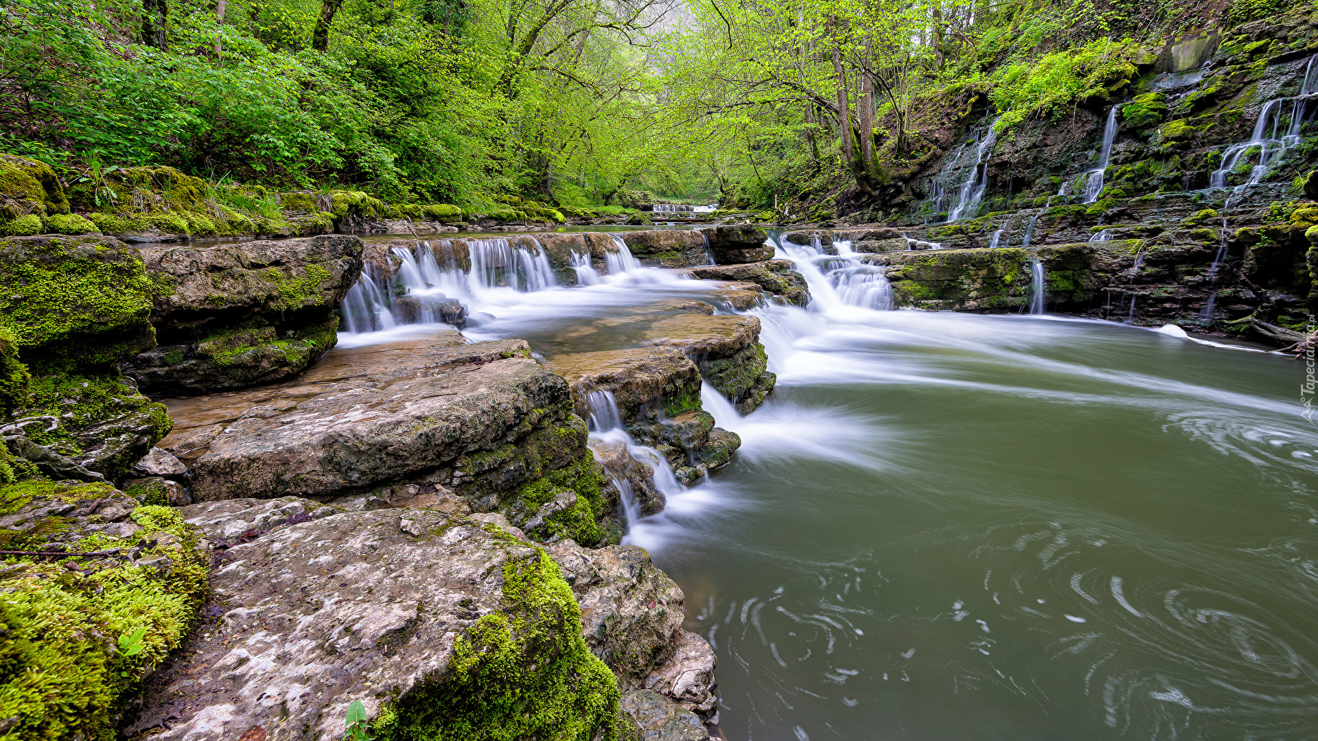 Edytor tapety: Rzeka i wodospad na skałach