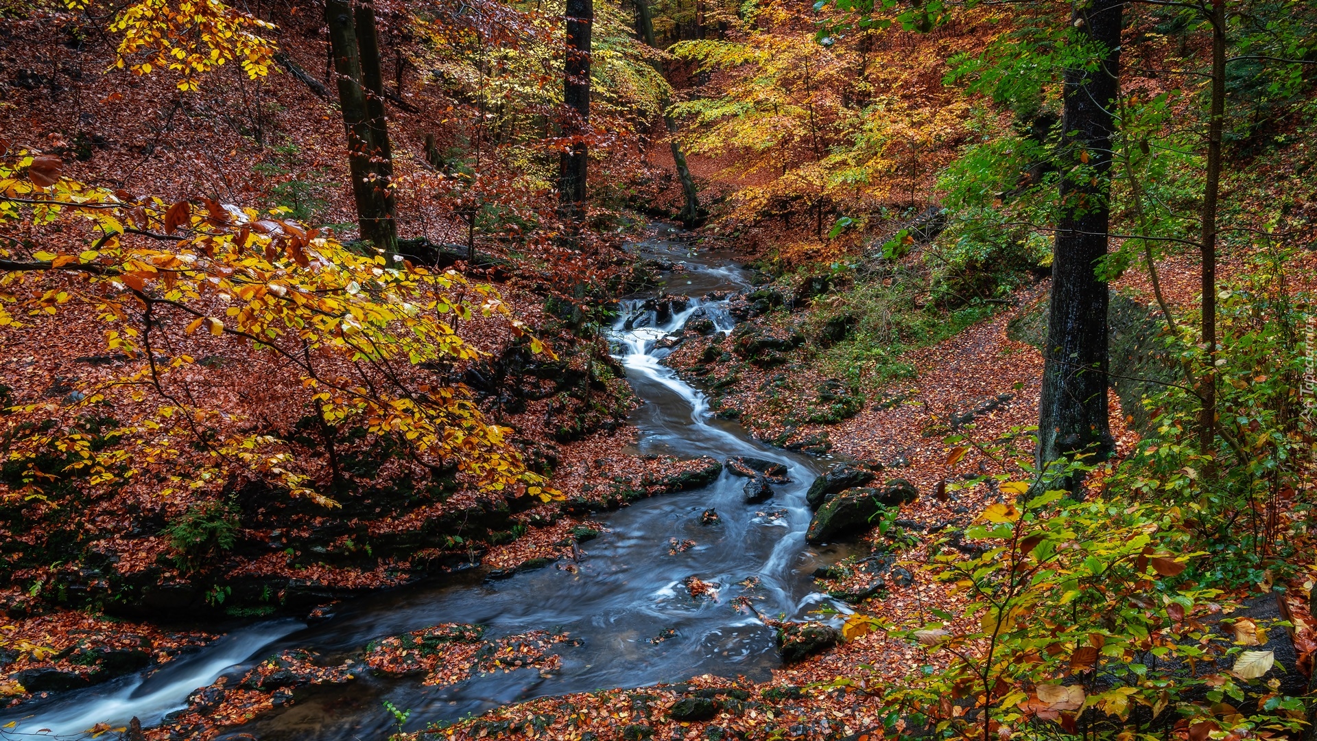 Edytor tapety: Opadłe liście nad potokiem