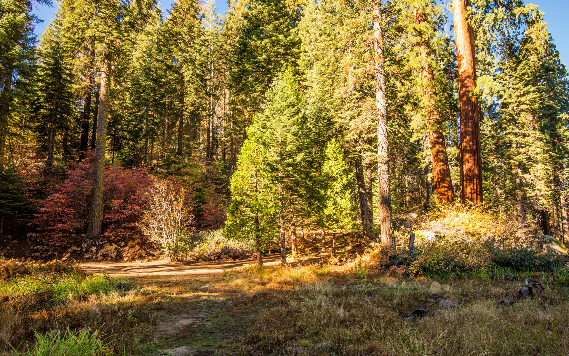 Edytor tapety: Drzewa w słonecznym świetle przy ścieżce