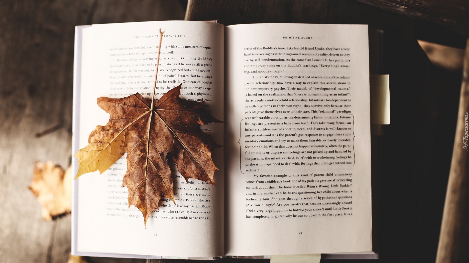 Edytor tapety: Jesienny liść klonu na otwartej książce