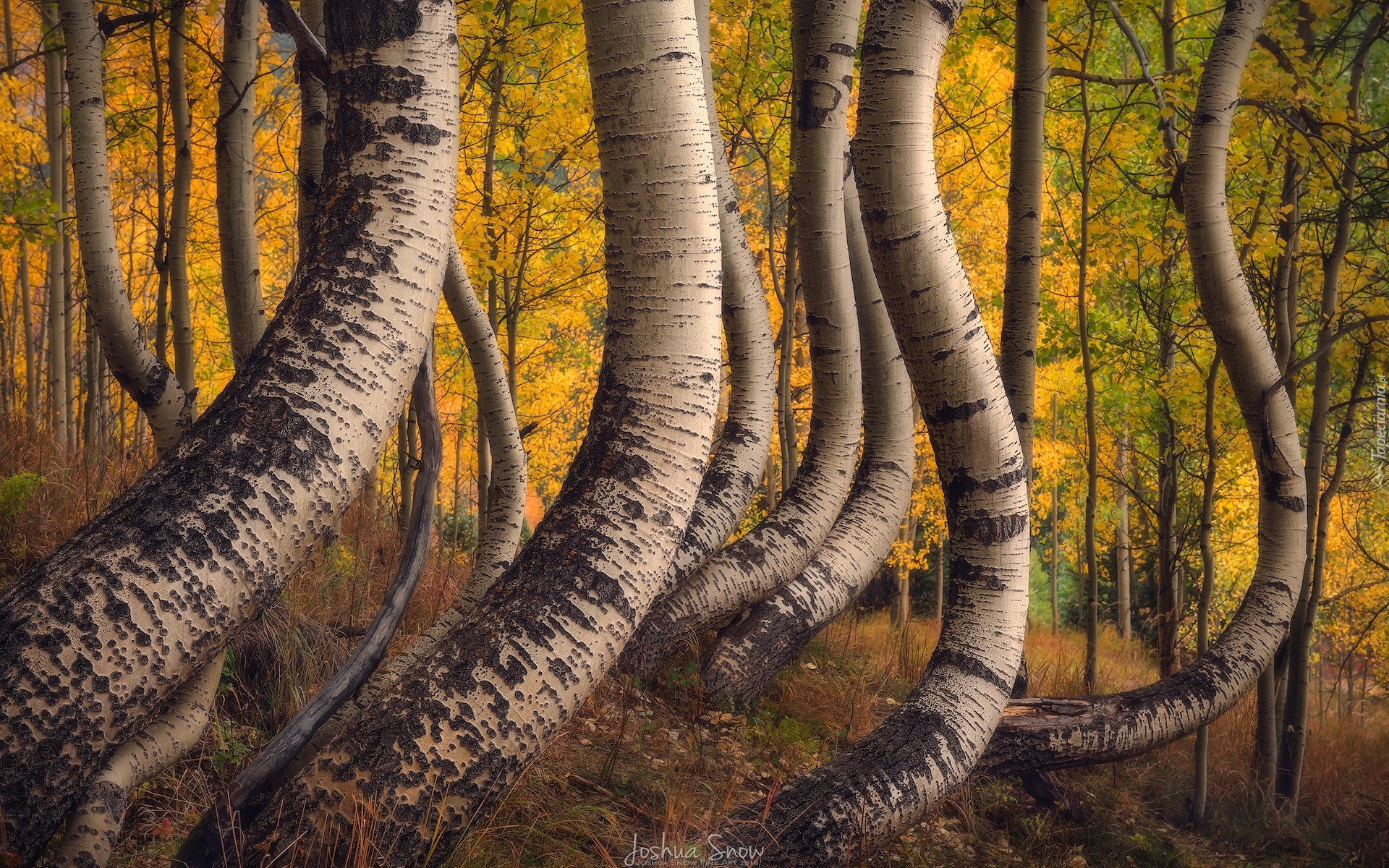 Edytor tapety: Wygięte pnie brzóz