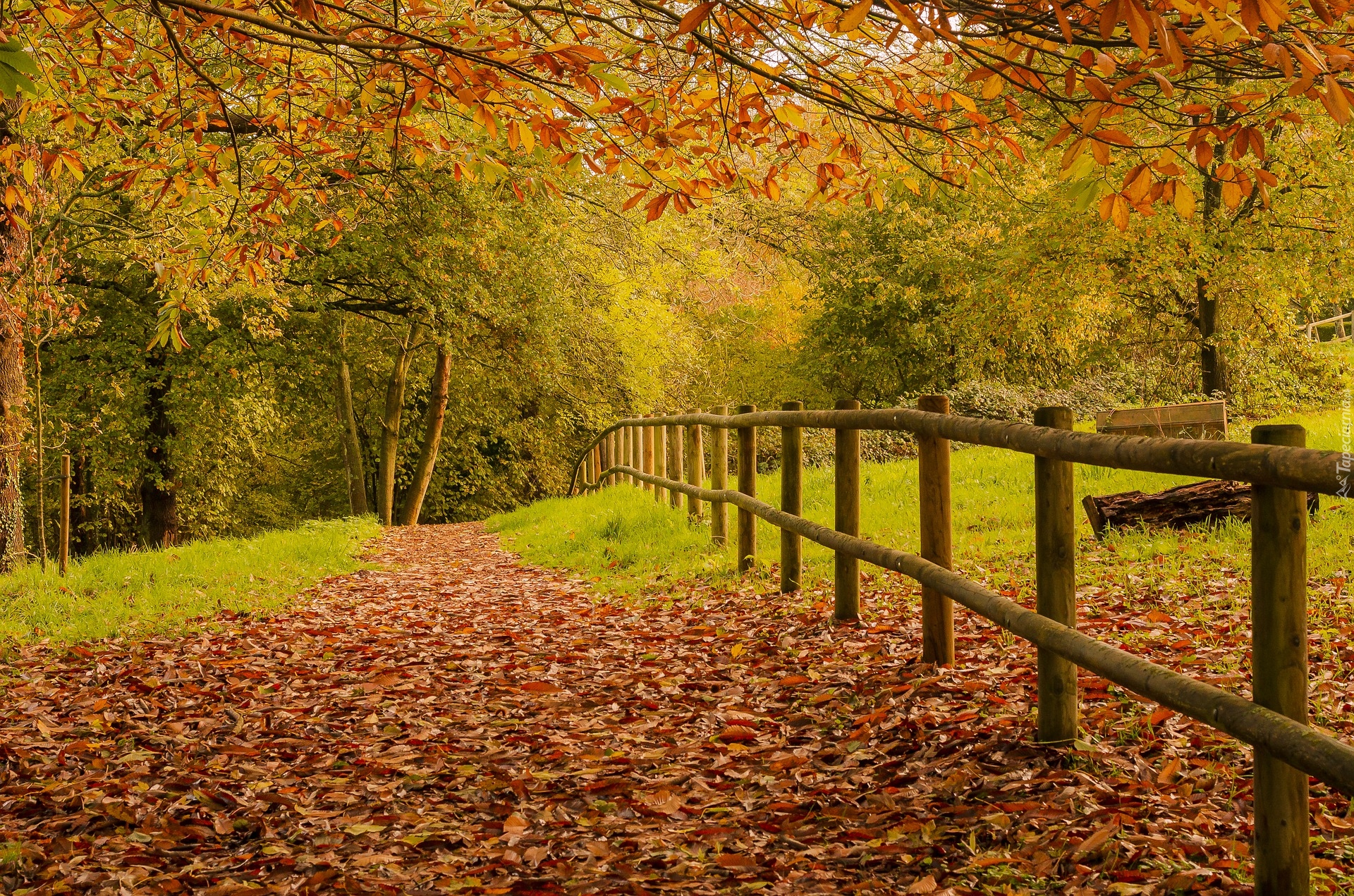Edytor tapety: Opadłe liście na drodze przy ogrodzeniu
