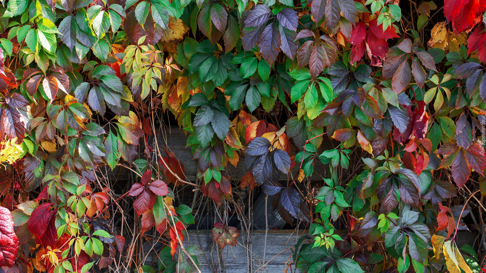 Edytor tapety: Różnokolorowe liście winobluszczu