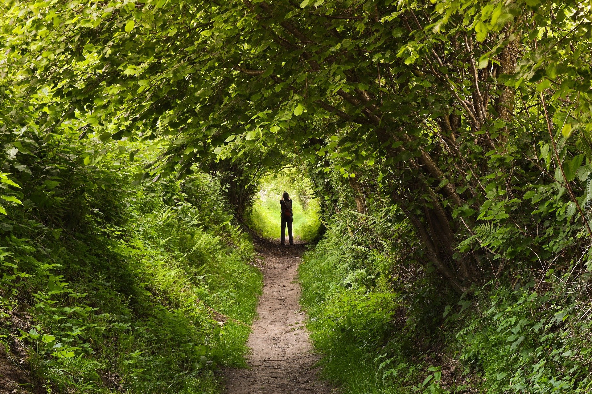 Edytor tapety: Człowiek w tunelu z drzew