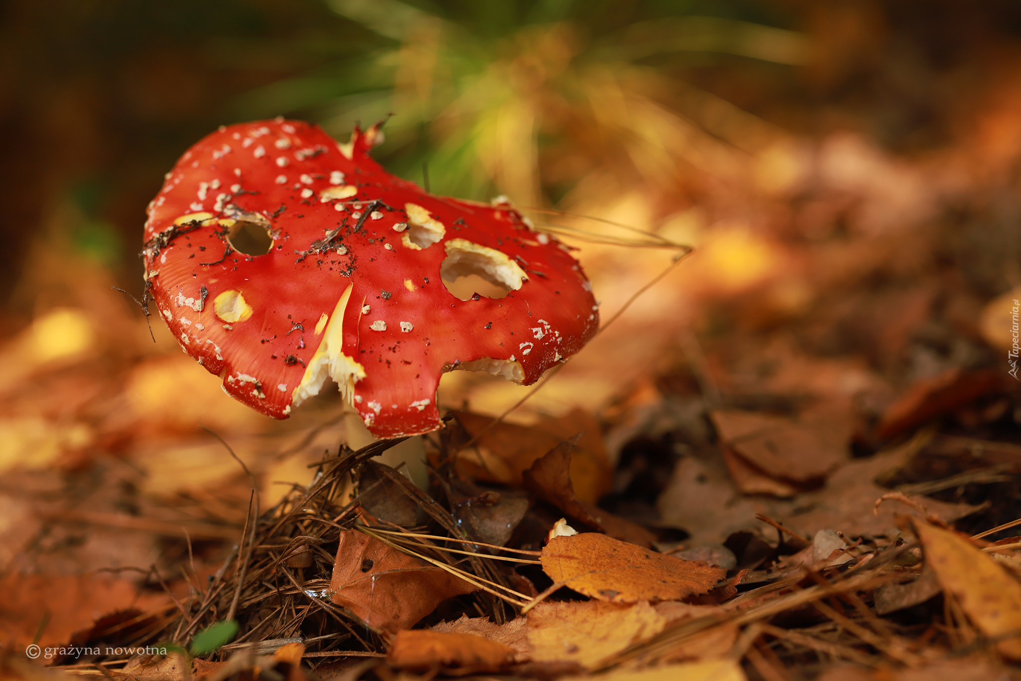Edytor tapety: Muchomor czerwony pośród liści i igliwia