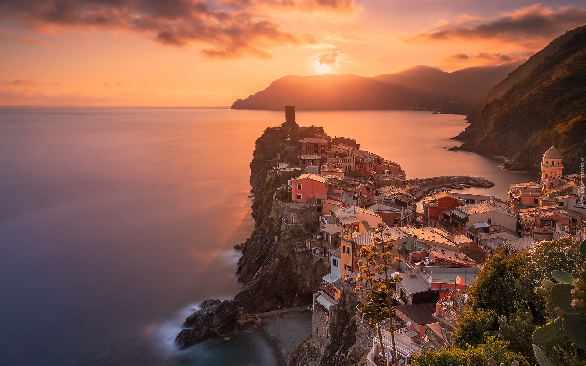 Edytor tapety: Zachód słońca nad miejscowością Vernazza nad Morzem Liguryjskim