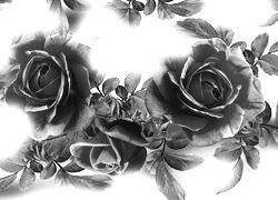 Edytor tapety: Trzy różowe róże z liśćmi w grafice