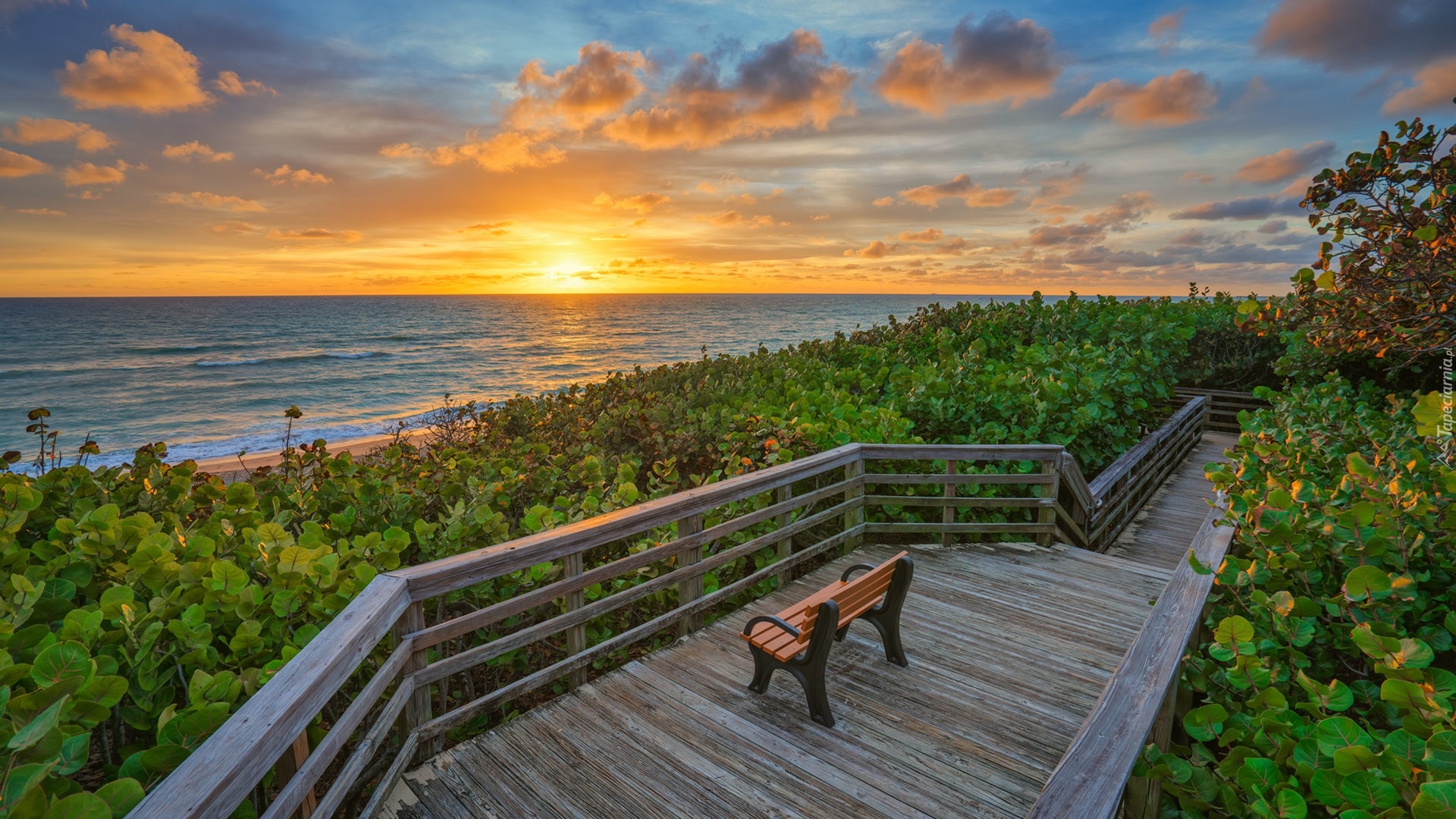 Edytor tapety: Ławka na pomoście z widokiem na morze