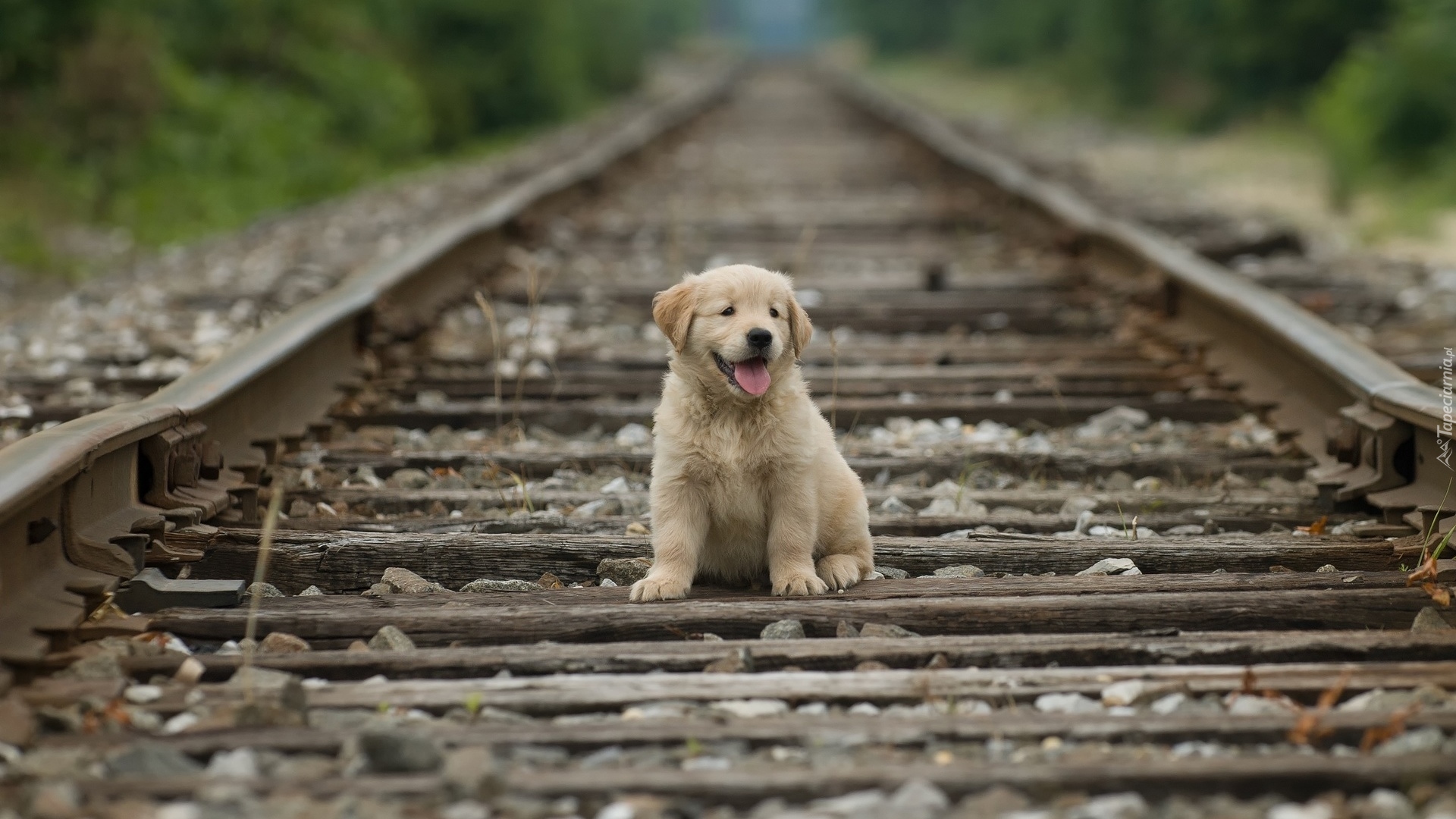 Edytor tapety: Szczeniak golden retrievera na torach
