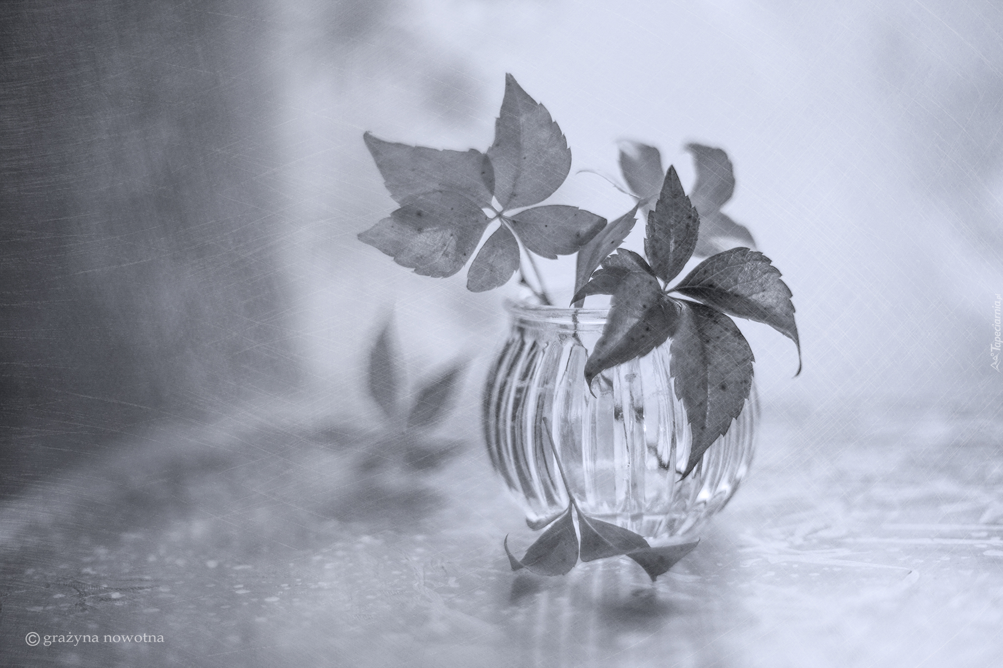 Edytor tapety: Liście dzikiego wina w wazoniku