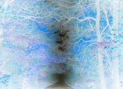 Edytor tapety: Zrudziałe drzewa wzdłuż zamglonej drogi