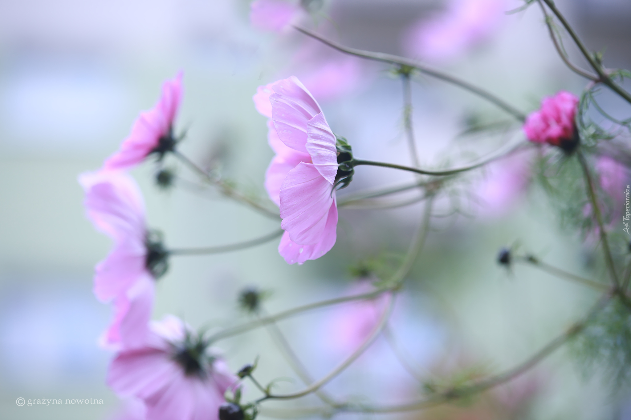 Edytor tapety: Rozwinięte kwiaty różowej kosmei