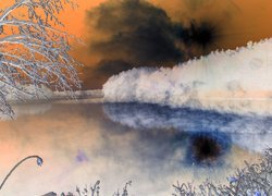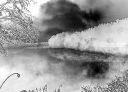 Edytor tapety: Mgła nad rzeką zimową porą