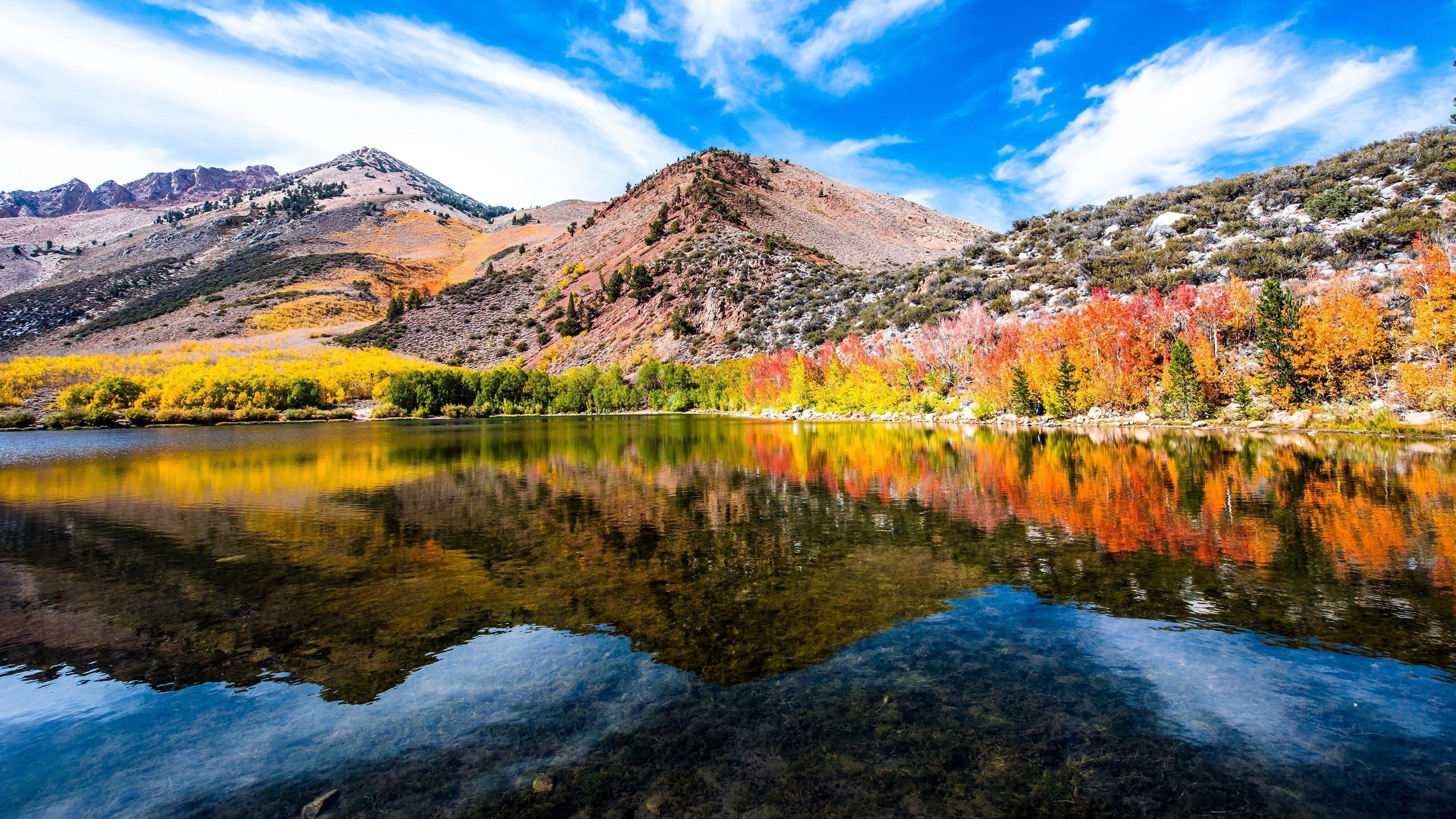 Edytor tapety: Odbicie gór i drzew w jeziorze North Lake