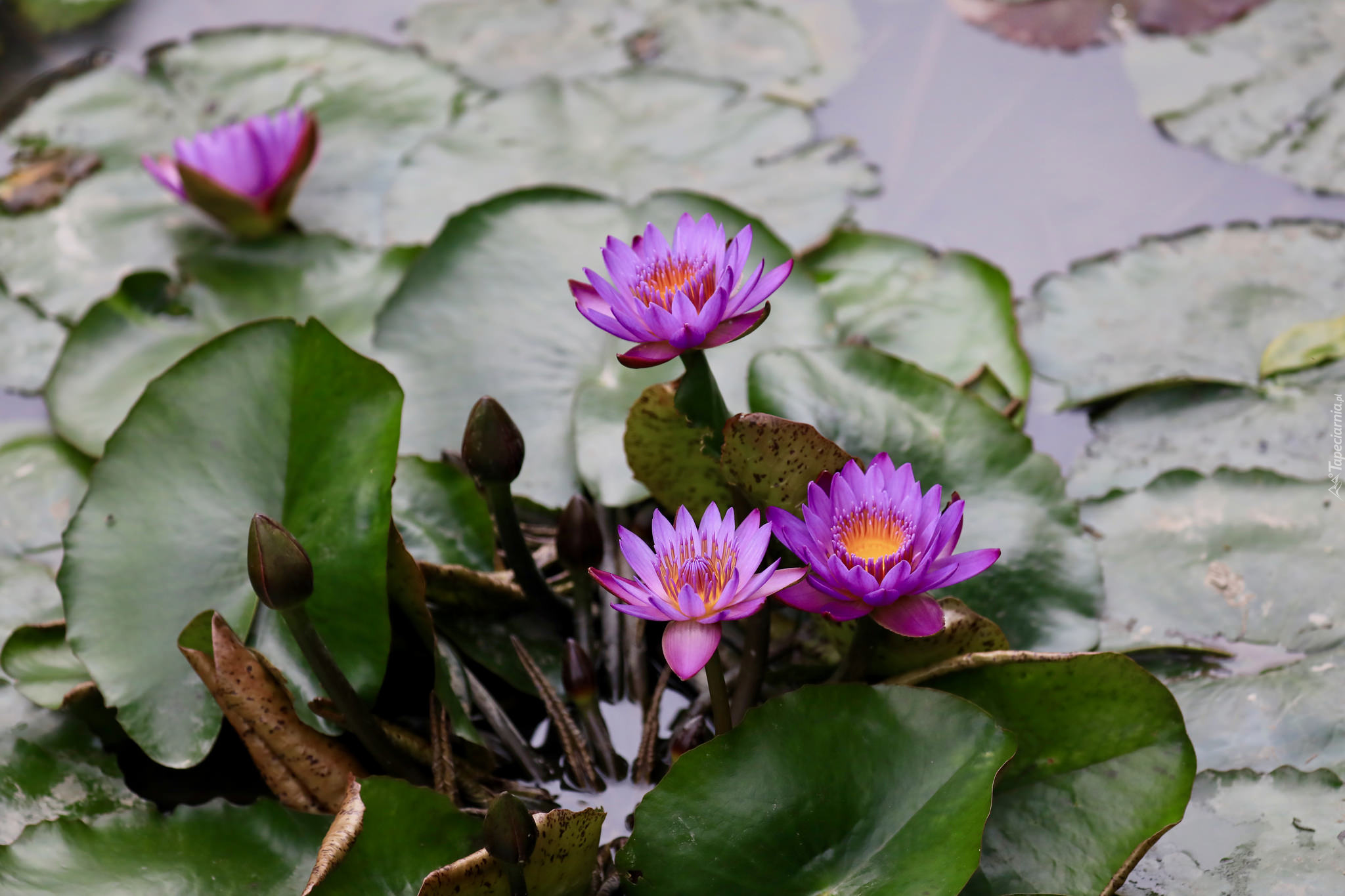 Edytor tapety: Kwiaty z pąkami i liście lilii wodnej