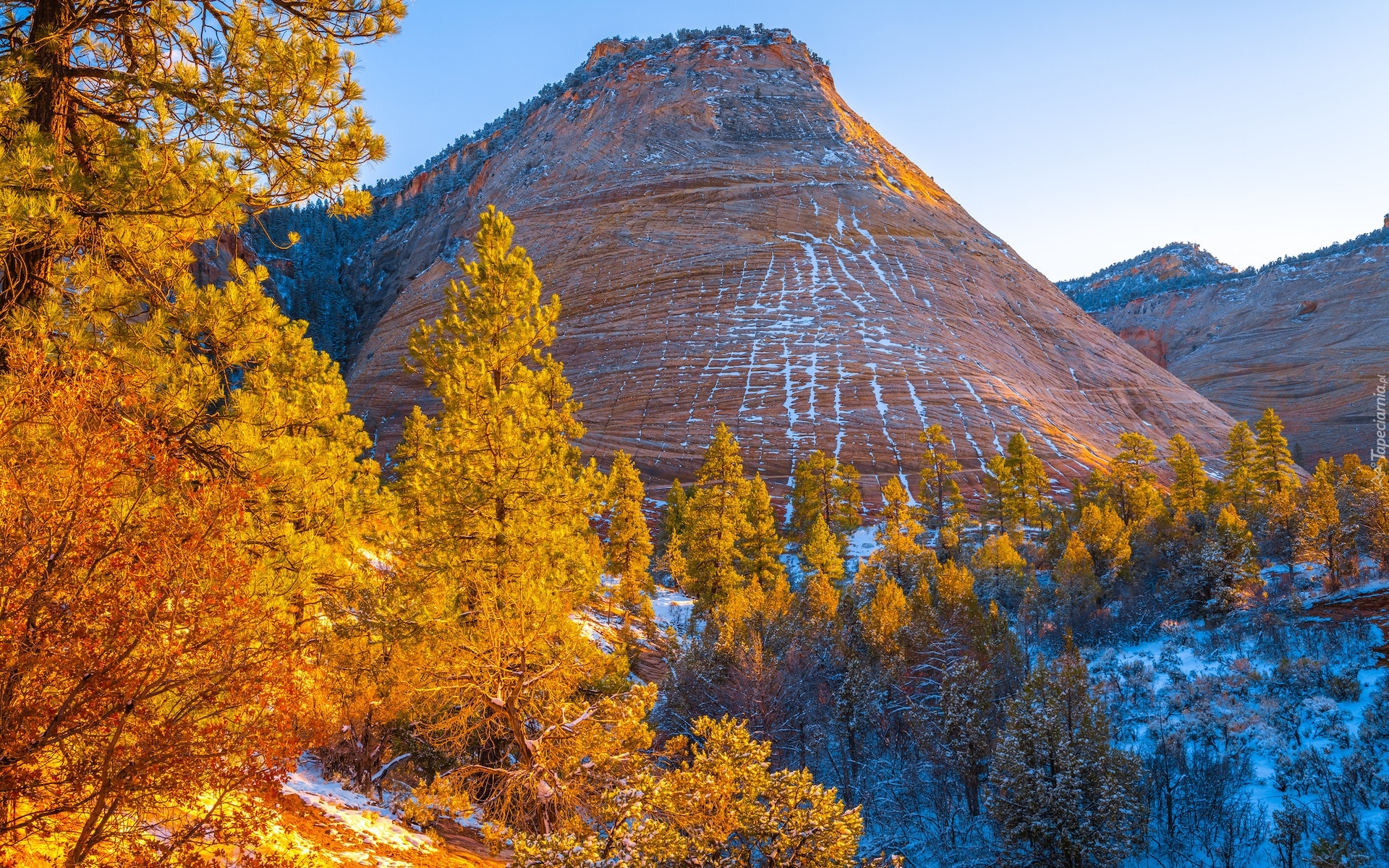 Edytor tapety: Góra Checkerboard Mesa w Parku Narodowym Zion jesienią