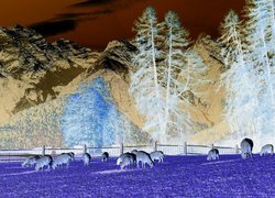Edytor tapety: Owce na pastwisku w górach