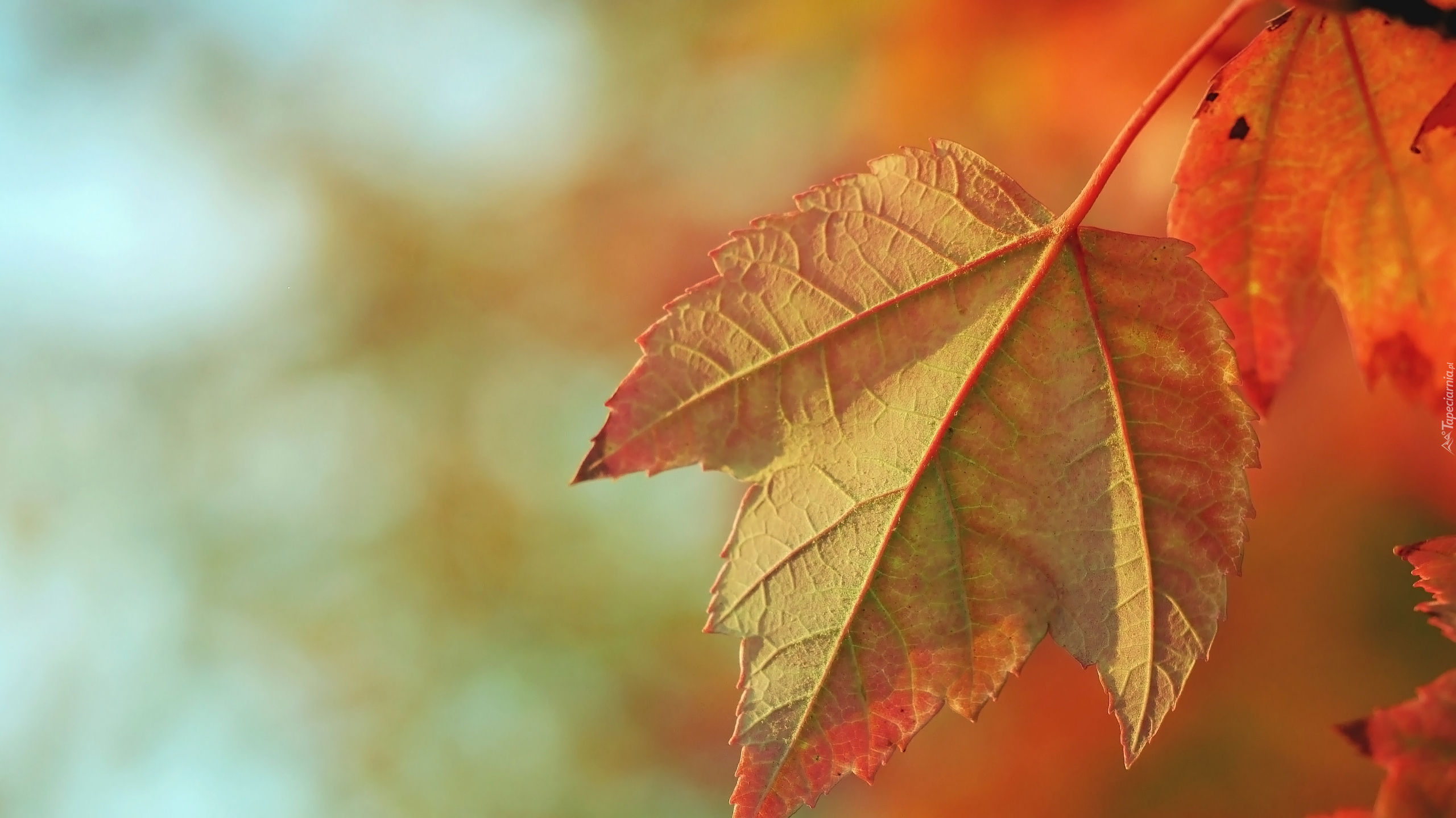 Edytor tapety: Rozświetlony jesienny liść w zbliżeniu