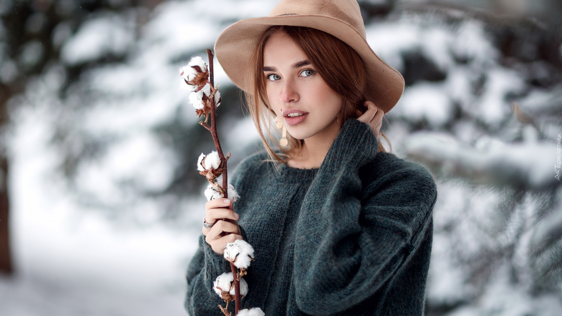 Edytor tapety: Kobieta w kapeluszu i swetrze