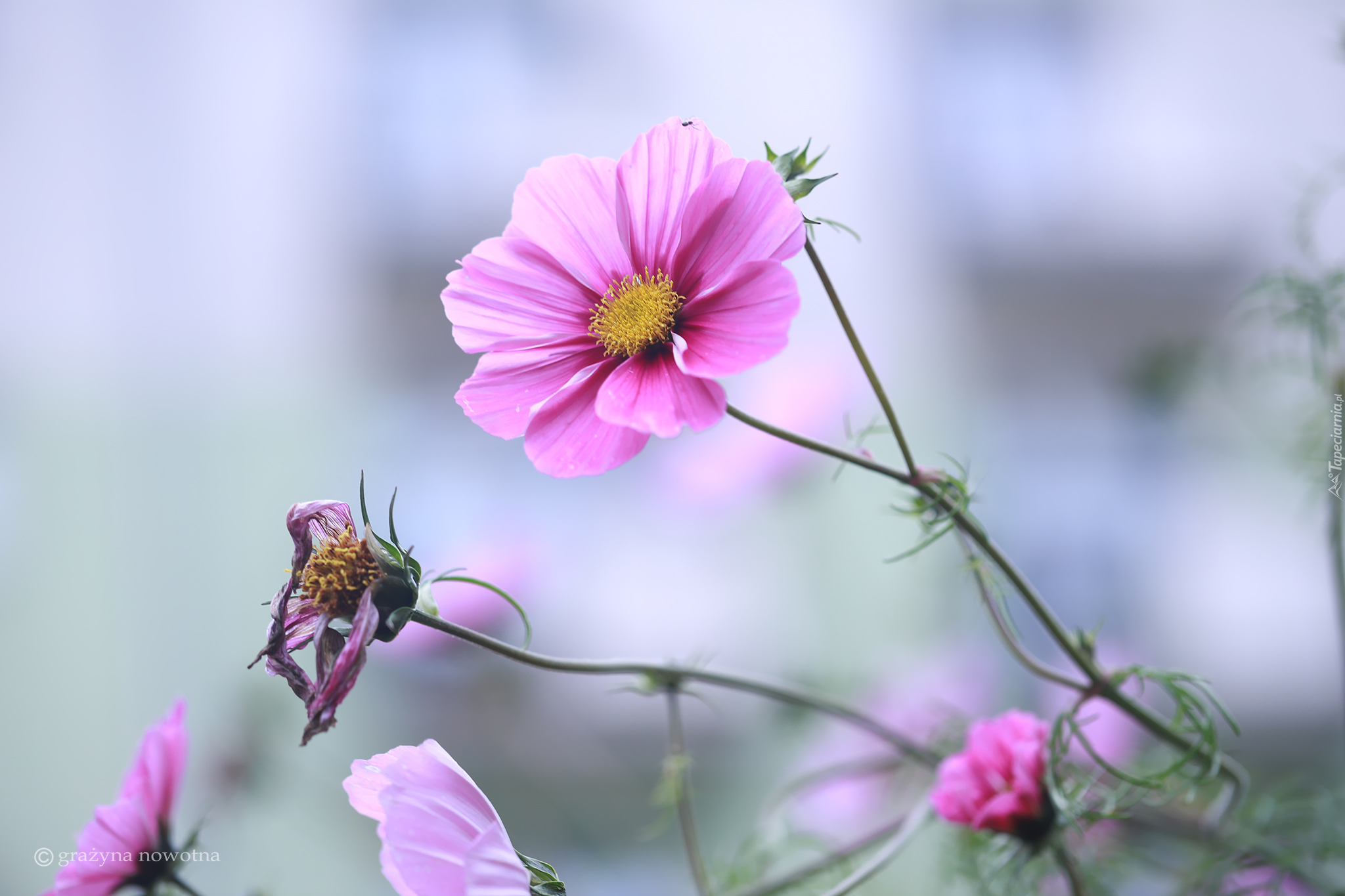 Edytor tapety: Kwiaty różowej kosmei w zbliżeniu